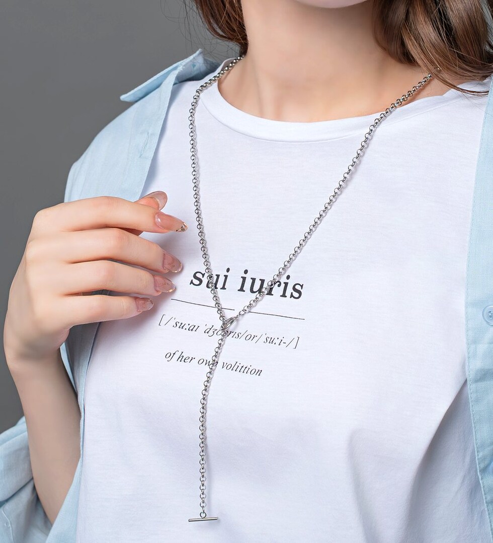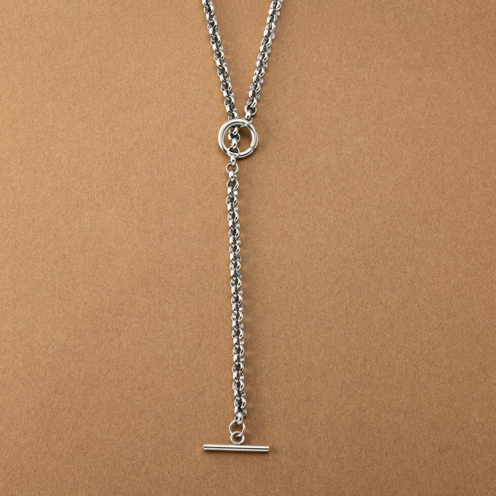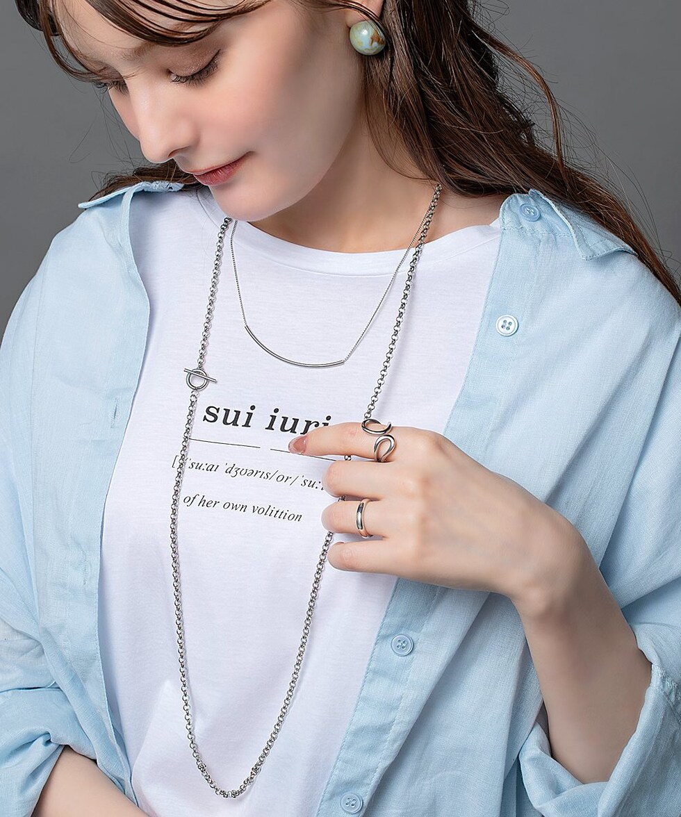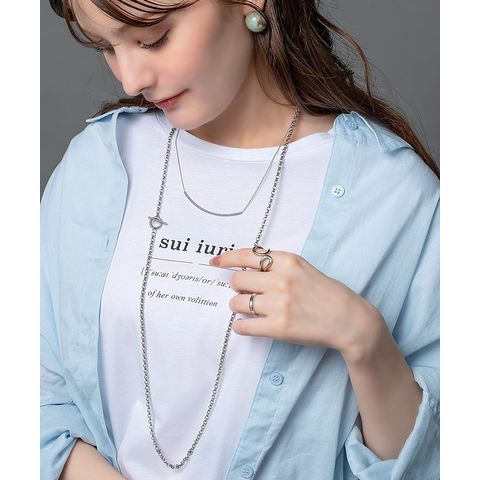 シンプルなコーデに映えるロングチェーンネックレス。 マンテルとメタルチェーンが抜け感ある洗練されたデザイン。アレンジ自在で、長さを調整してY字スタイルにも調節できる万能アイテムです。