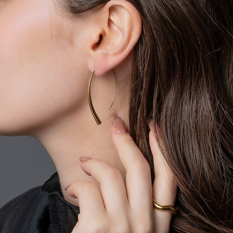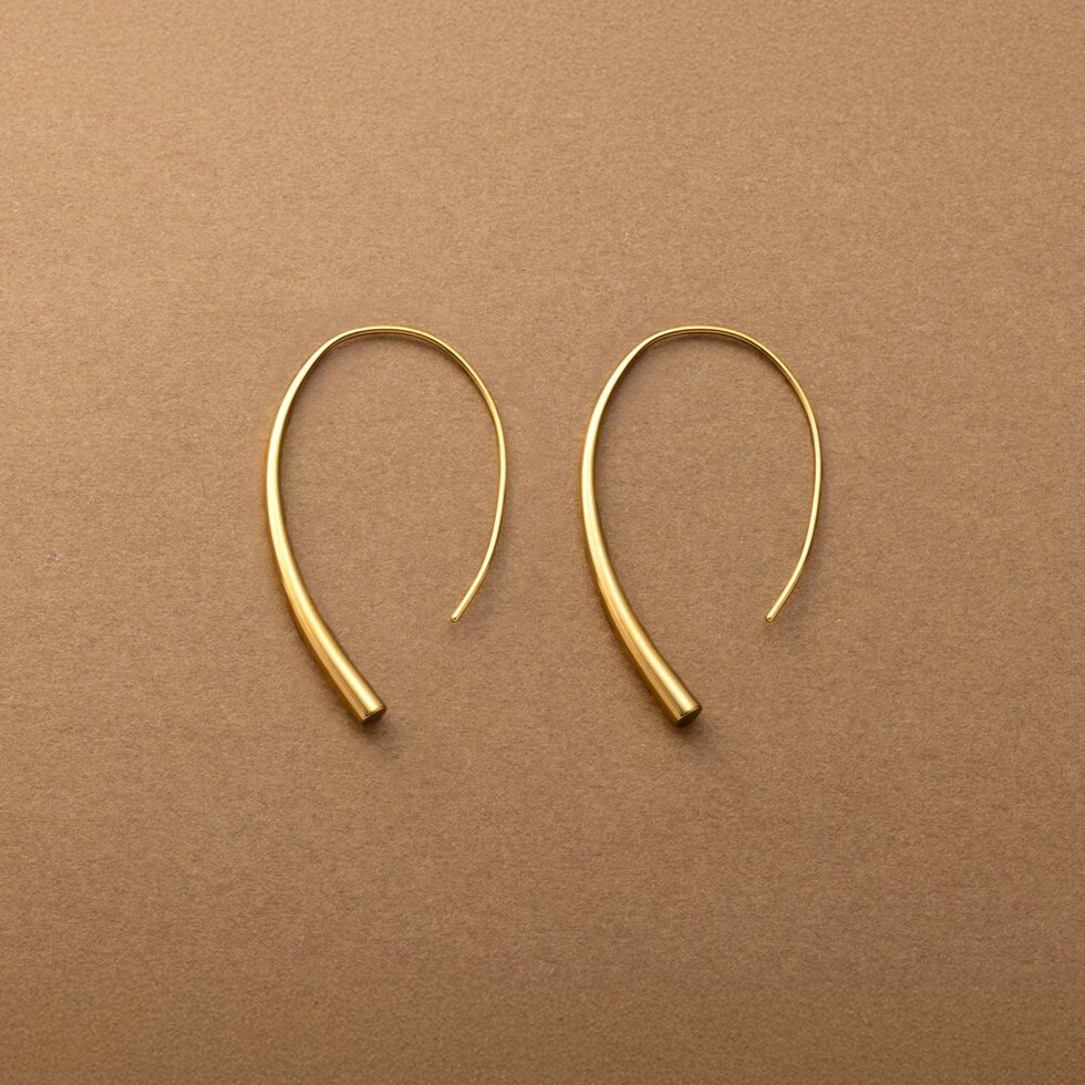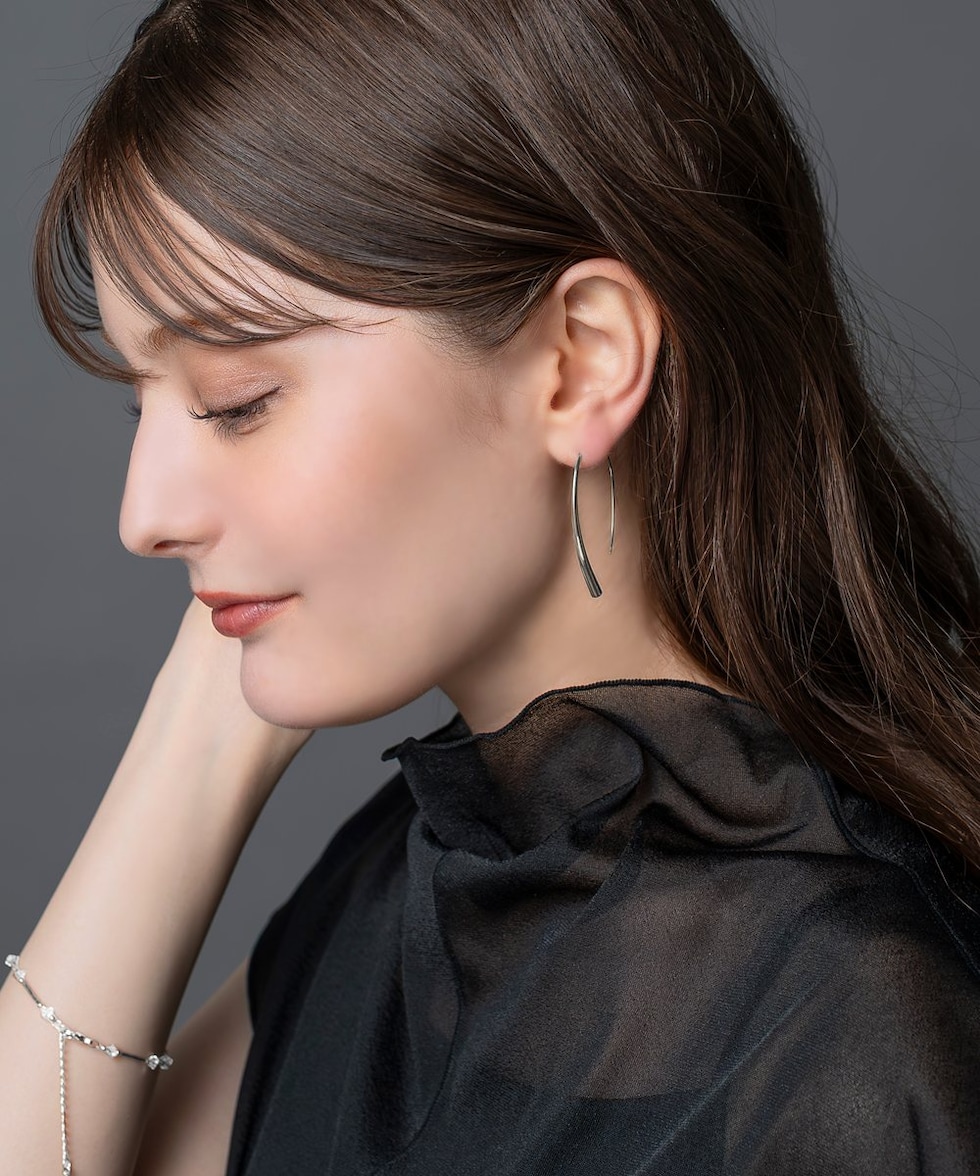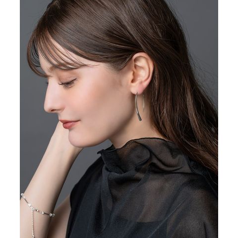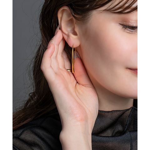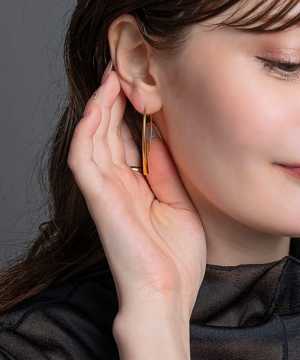 ドロップモチーフのようなフックピアス。控えめで上品なデザインが大人の女性にぴったりなアイテム。大ぶりだけど、華奢なシルエットとシンプルな見た目だからデイリーに活躍しそう。
