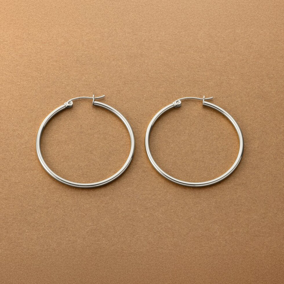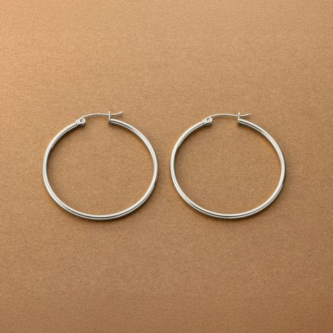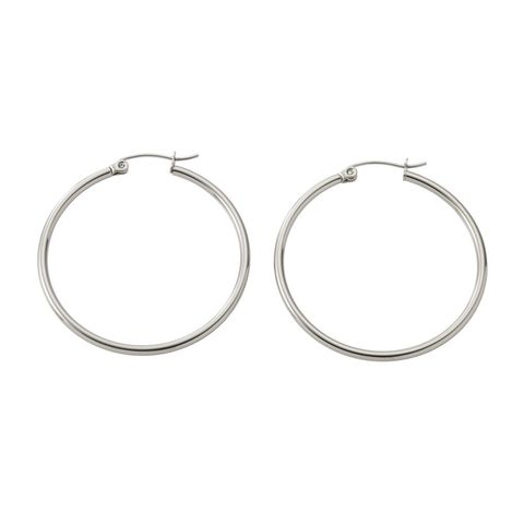 ピアス ステンレス 金属アレルギー サージカルステンレス レディース つけっぱなし フープ キャッチレス 開閉式 ワンタッチ ビッグ 大きめ 2mm幅 軽量 cream dot ゆうパケット [シルバー_40mm]