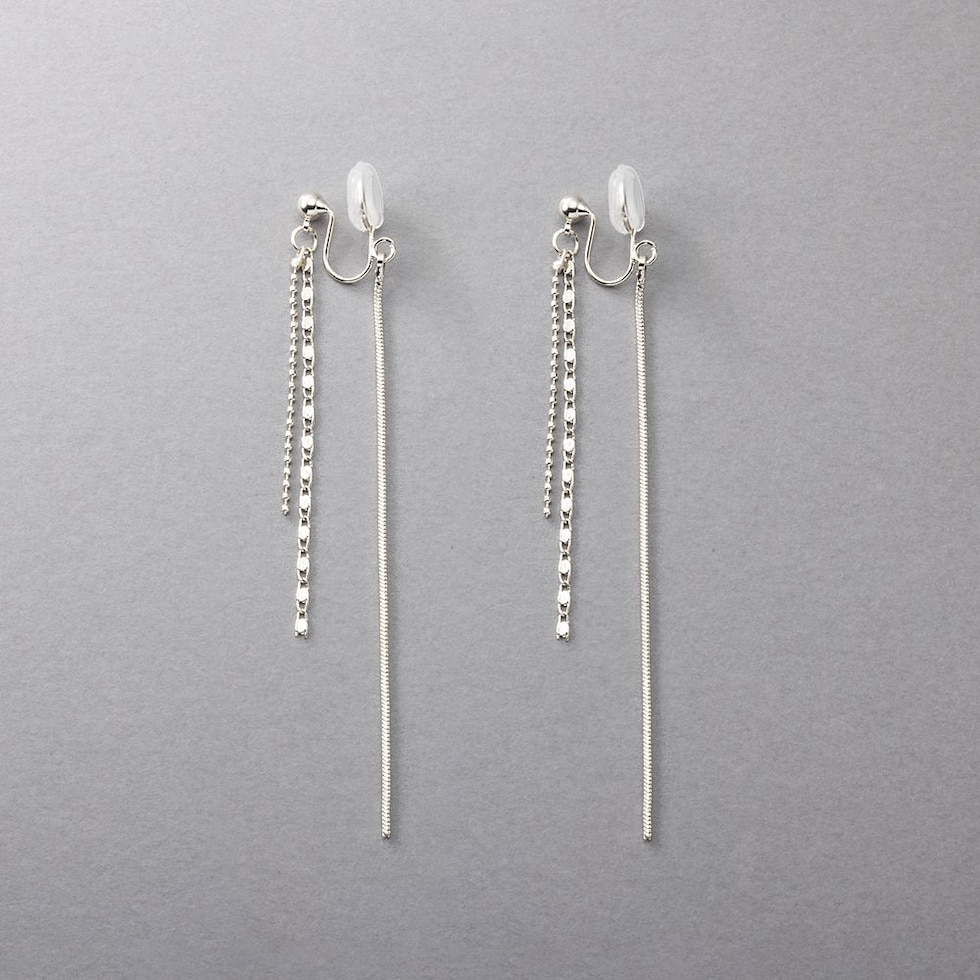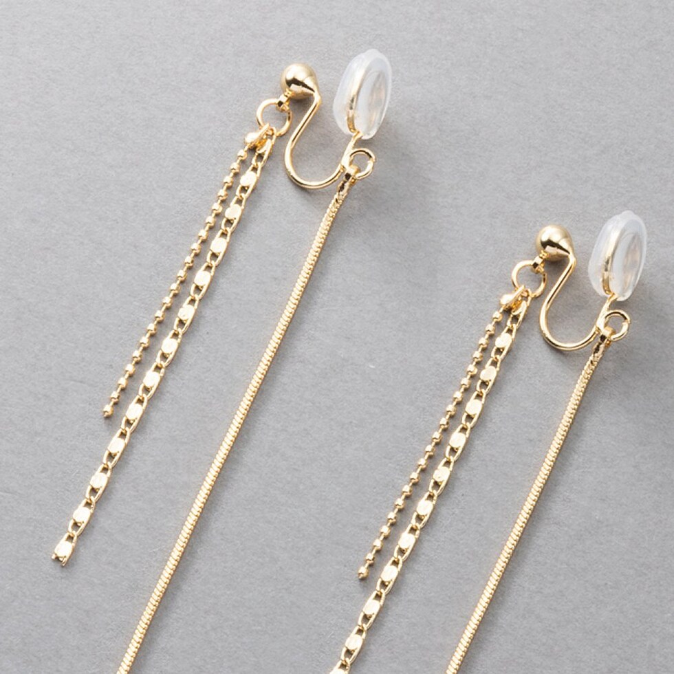 イヤリング レディース ワイヤーフィット 挟むだけ ピアス見え シリコンカバー チェーン ロング バックキャッチ風 揺れる メタル 艶 cream dot ゆうパケット [シルバー_イヤリング]