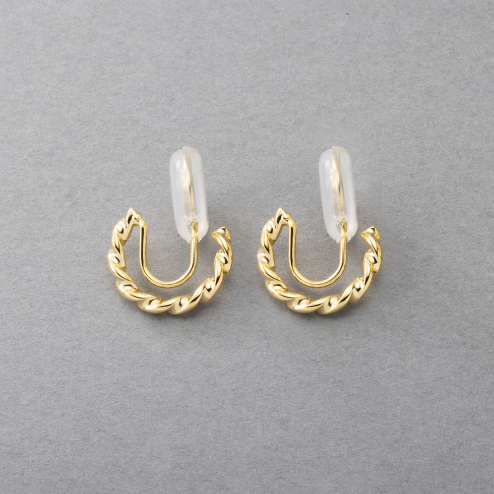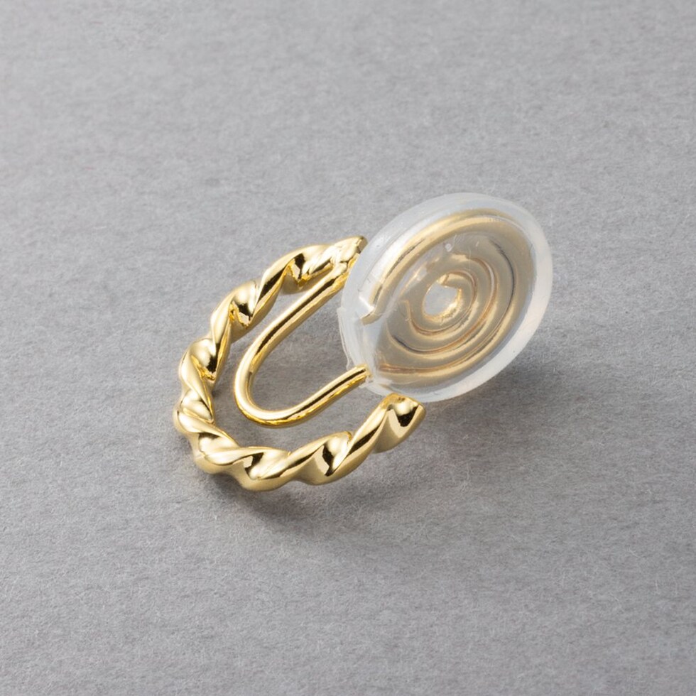 イヤリング レディース ワイヤーフィット ツイスト フープ メタル 艶 小ぶり 挟むだけ ピアス見え シリコンカバー cream dot ゆうパケット [ゴールド_イヤリング]