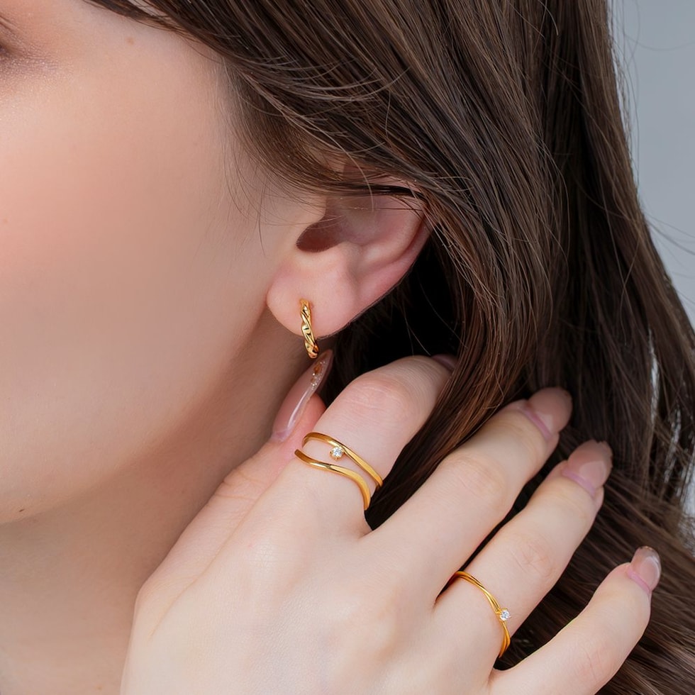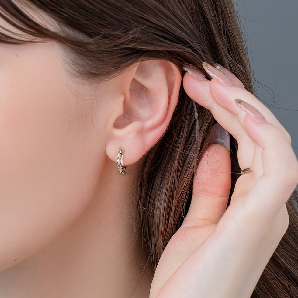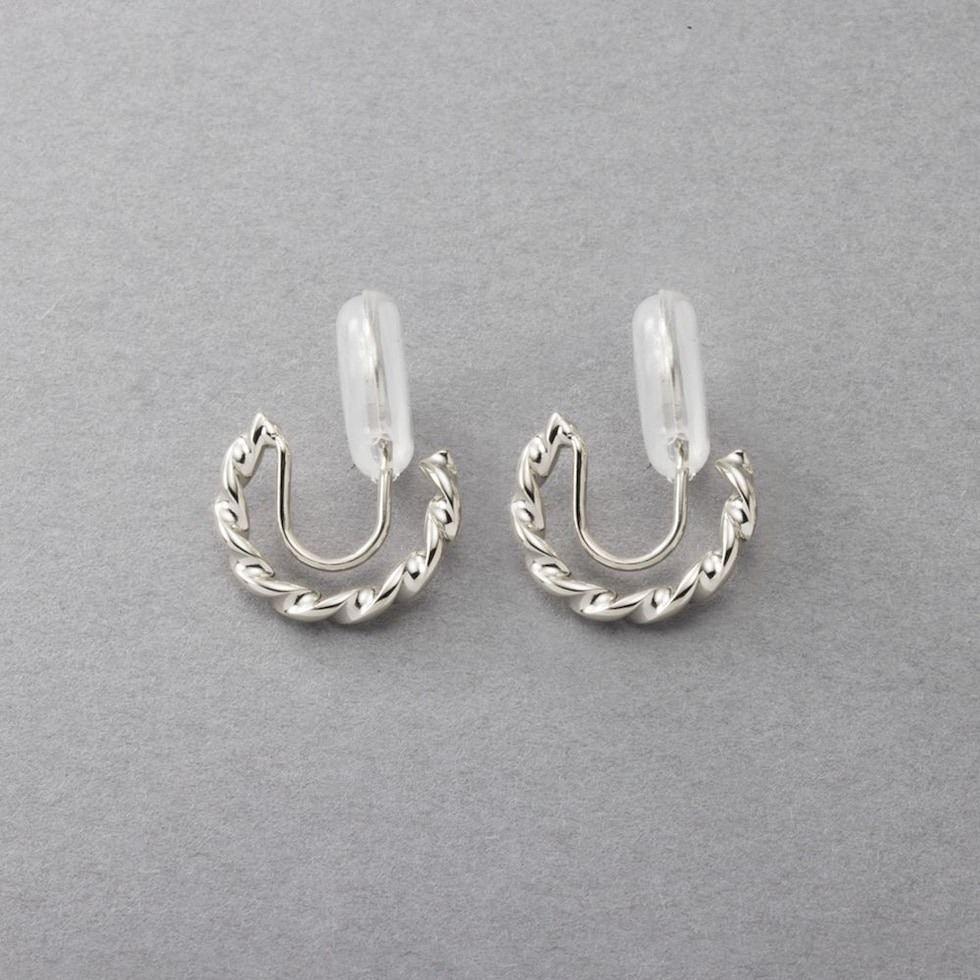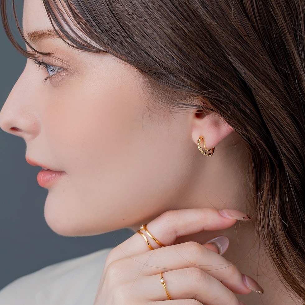 ツイストメタルのフープラインが艶めくワイヤーフィットイヤリング。シンプルで洗練されたデザインが大人に似合うひと品。さりげないサイズ感でデイリー使え、ピアスのようにすっきり見えるオススメのアイテムです。