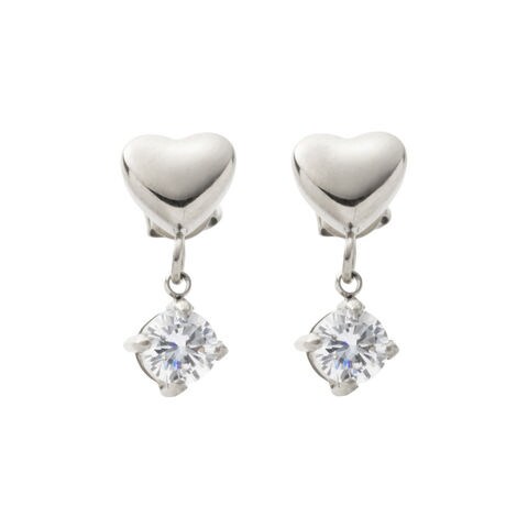 キラキラと煌くビジューがさりげなく揺れるピアス。大人らしい甘さをプラスするハートモチーフと品良く身につけられるサイジングが◎錆びにくく傷に強いステンレス製で、長時間の着用も安心の低アレルギー素材です。