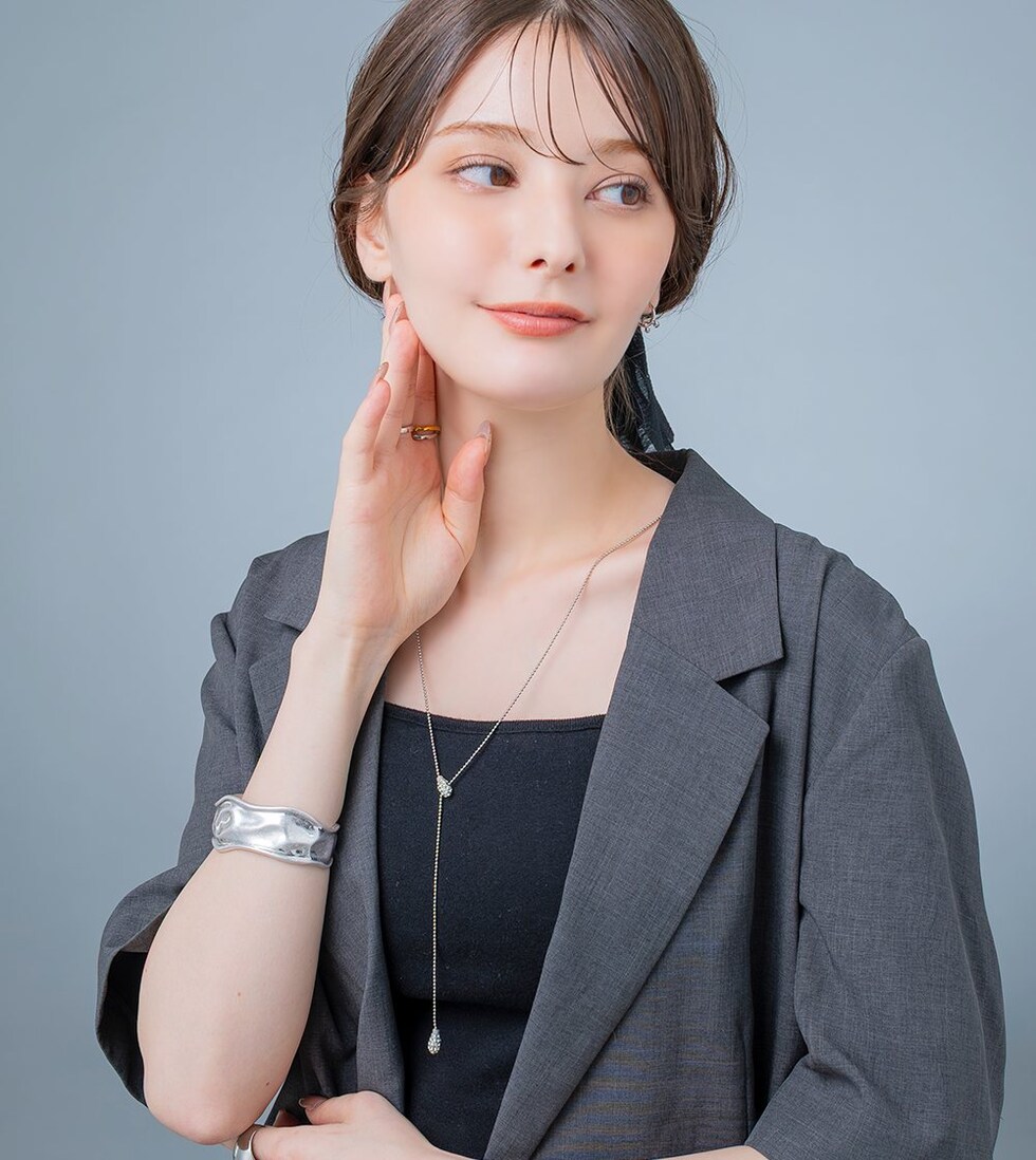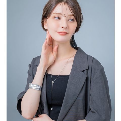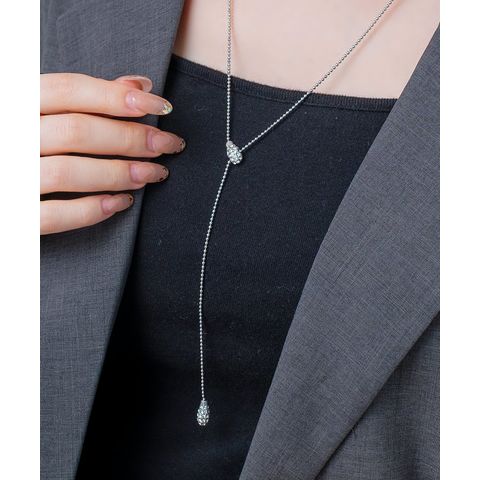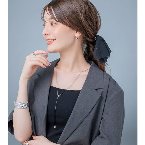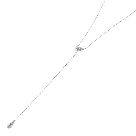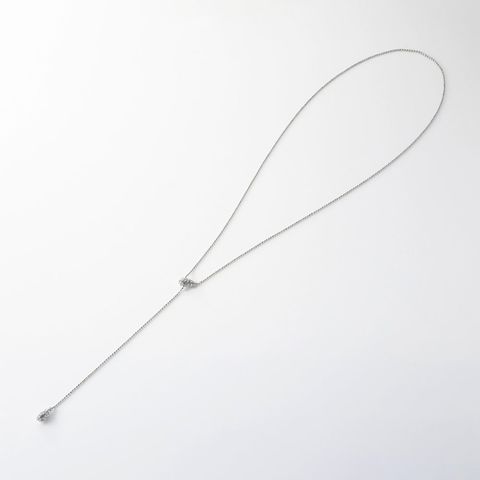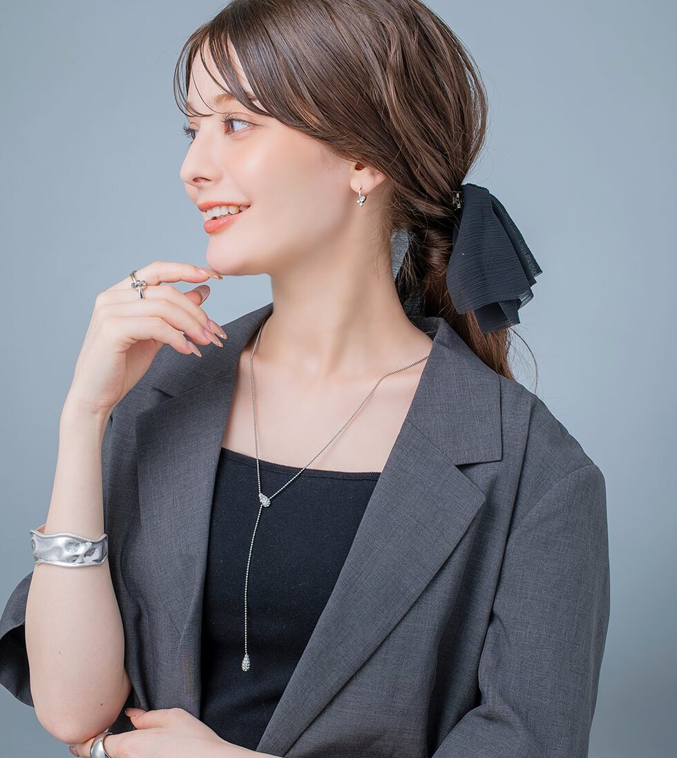 パヴェデザインのドロップモチーフが繊細な煌めきを放つY字ネックレス。華奢なボールチェーンが派手すぎず、さりげないアクセントをプラスします。スライド式アジャスターでお好みのバランスに調節が可能でデイリー使いにぴったりの一品。
