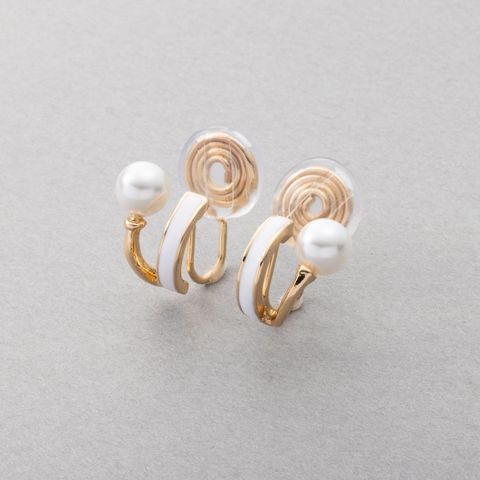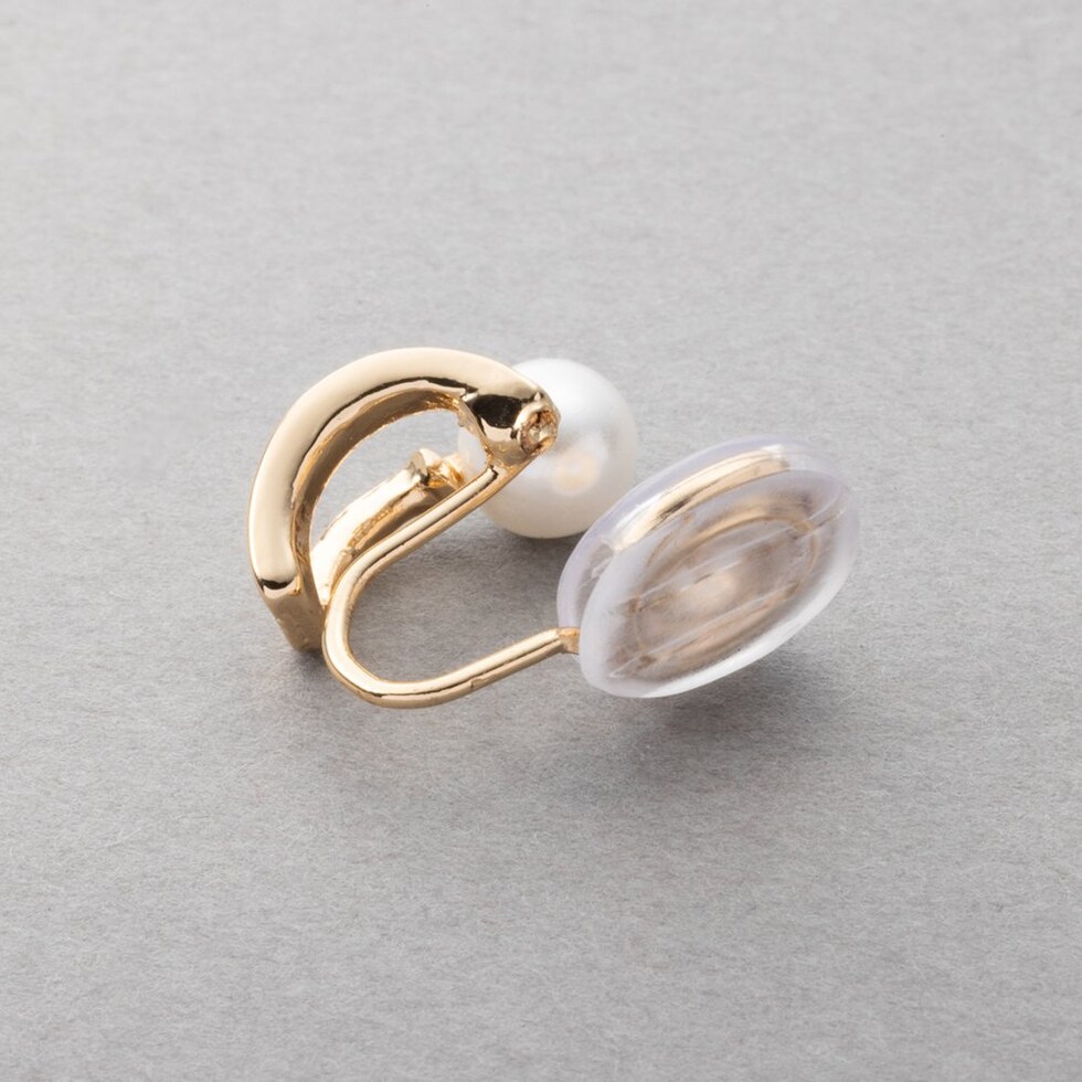 イヤリング レディース ワイヤーフィット 挟むだけ ピアス見え シリコンカバー パール ライン メタル 白 cream dot ゆうパケット [ゴールド_イヤリング]
