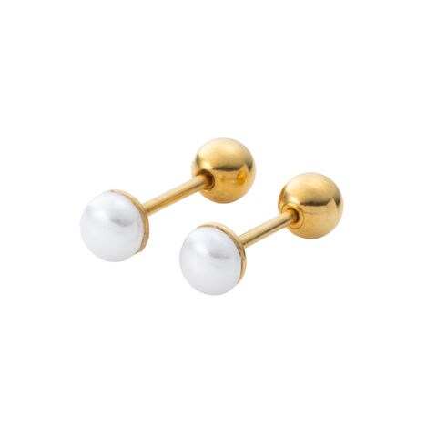 ピアス ステンレス 金属アレルギー サージカルステンレス レディース つけっぱなし ネジロック式 ボールキャッチ パール 一粒 6サイズ 両耳用 cream dot ゆうパケット [ゴールド_4mm]