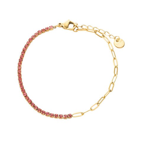 ブレスレット ステンレス 金属アレルギー サージカルステンレス レディース つけっぱなし ラインビジュー ハーフエタニティ カラーストーン 切り替え MIXデザイン チェーン cream dot ゆうパケット [ピンク_ワンサイズ]