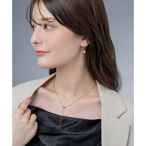 さりげなく存在感を放つ一粒ビジューのフックピアス。緩やかで個性的なメタルラインがこなれた雰囲気を演出します。シンプルだけどアクセントになる、オフィスでもオケージョンでもに活躍してくれるひと品。