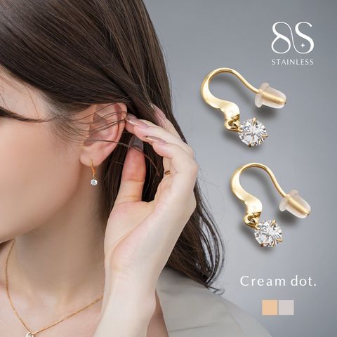 ピアス ステンレス 金属アレルギー サージカルステンレス レディース つけっぱなし フック ドロップ ビジュー 小ぶり 揺れる シリコンキャッチ cream dot ゆうパケット [シルバー_ピアス]