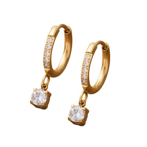 ビジューラインと一粒ビジューが煌めくフープピアス。派手過ぎず流行に左右されないデザインで長くご愛用頂けるひと品。長時間の着用にもオススメなステンレス製でギフトにもピッタリなアイテムです。