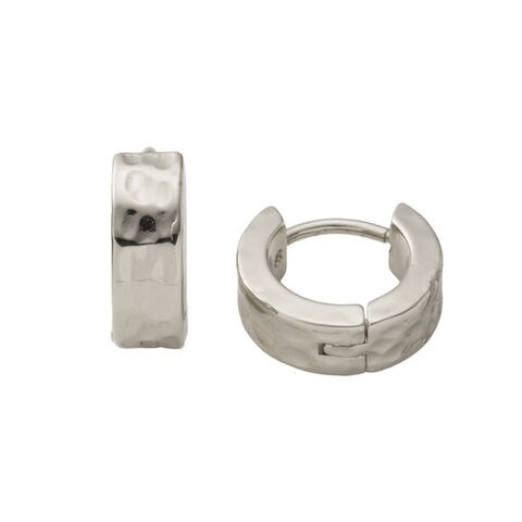 シンプルなフープにたたき加工を施したキャッチレスピアス。ほどよく個性を添えたデザインが、さりげなくも目を惹くひと品。錆びにくく傷に強いステンレス製で、デイリー使いにぴったりのアイテムです。