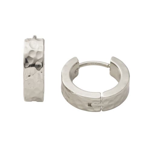 シンプルなフープにたたき加工を施したキャッチレスピアス。ほどよく個性を添えたデザインが、さりげなくも目を惹くひと品。錆びにくく傷に強いステンレス製で、デイリー使いにぴったりのアイテムです。