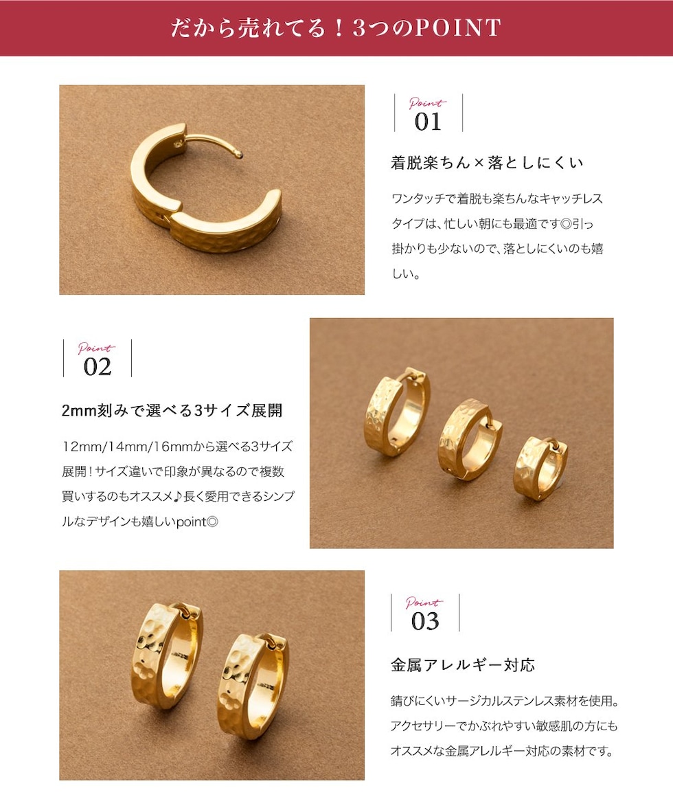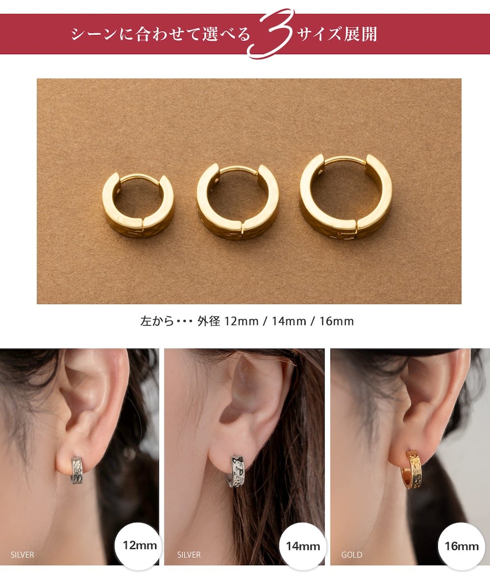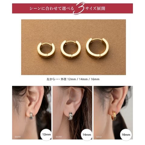 12mm/14mm/16mmから選べる3サイズ展開!サイズ違いで印象が異なるので複数買いするのもオススメ♪長く愛用できるシンプルなデザインも嬉しいpoint◎