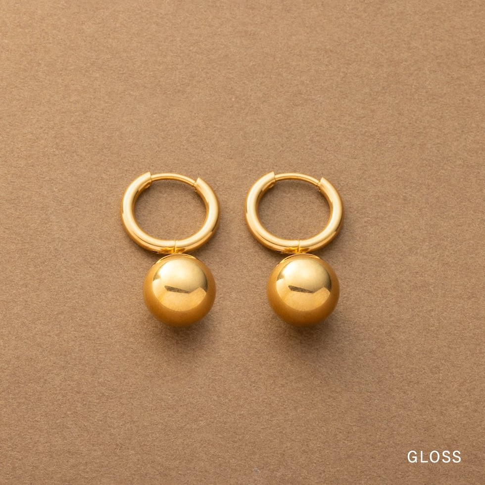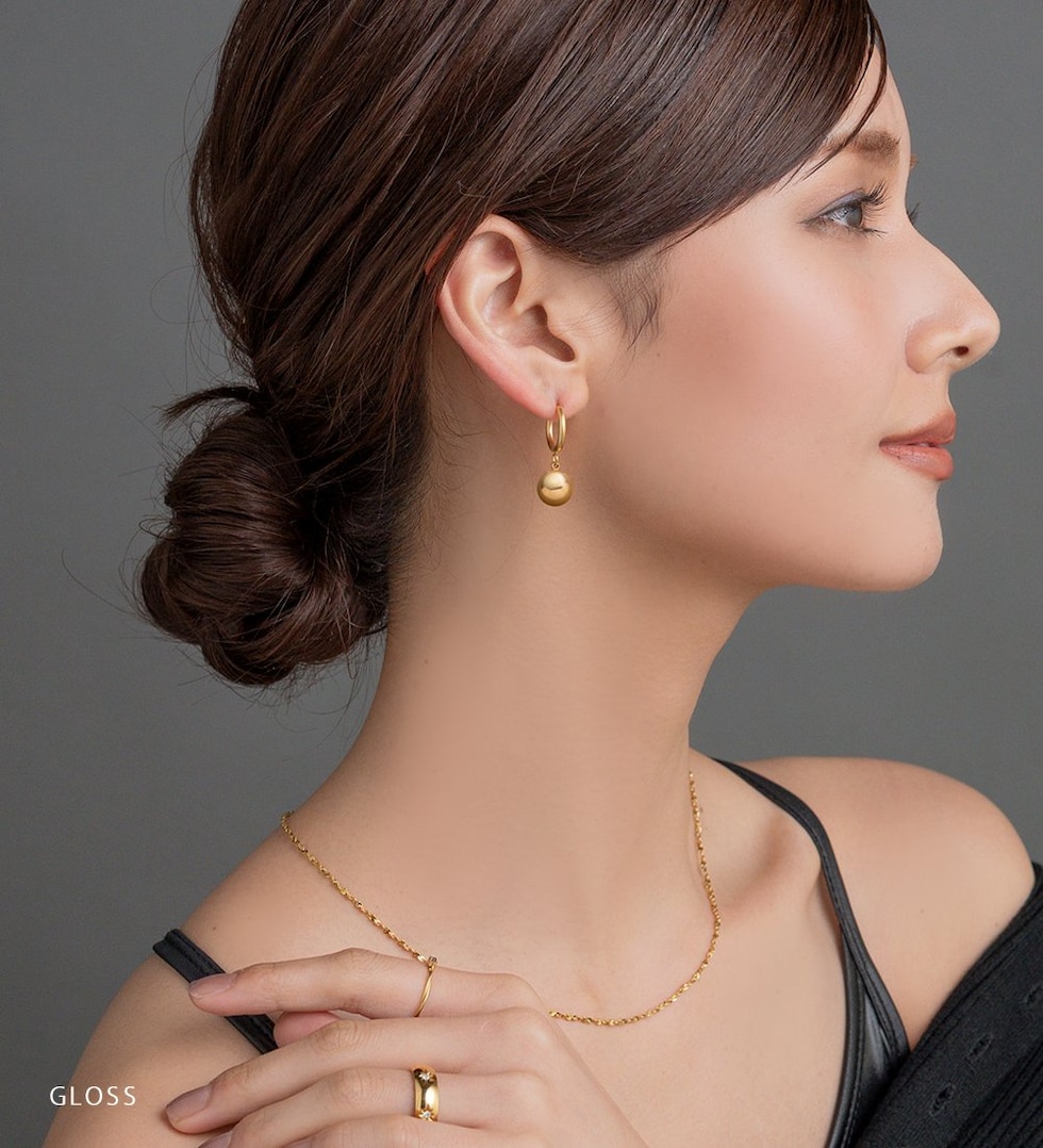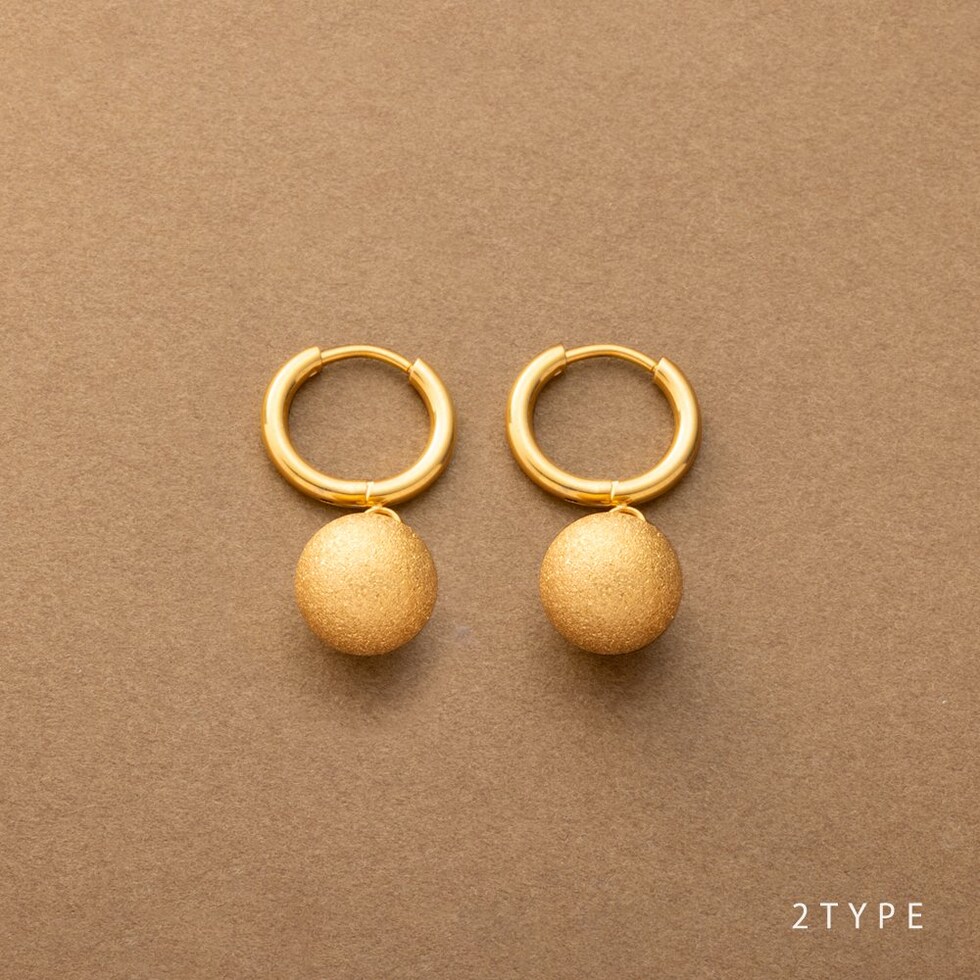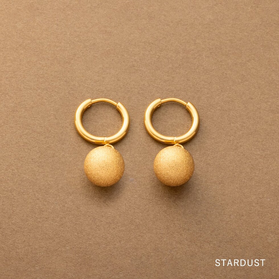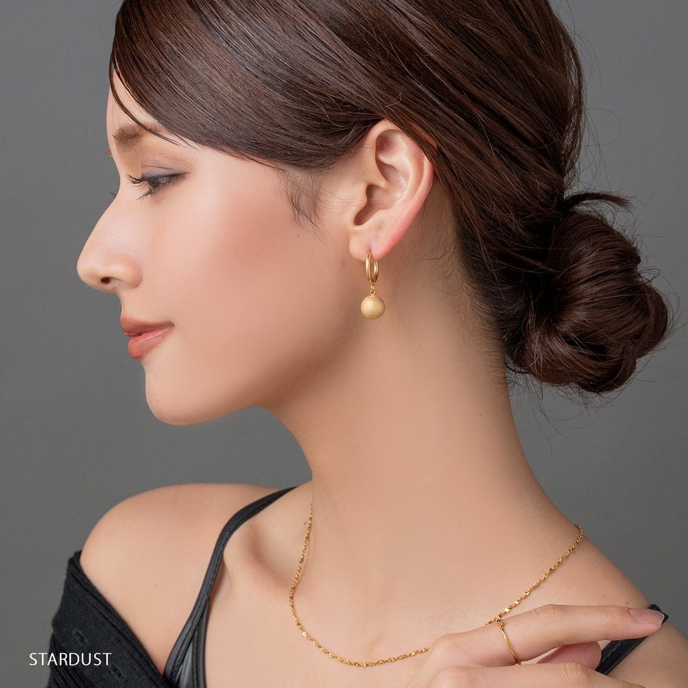 質感が選べるメタルスフィアのキャッチレスピアス。繊細に煌めくスターダスト加工と艶やかなスフィア。どちらもシンプルで高見えするオススメのデザインです。錆びにくく傷に強いステンレス製で、長時間の着用も安心の低アレルギー素材です。