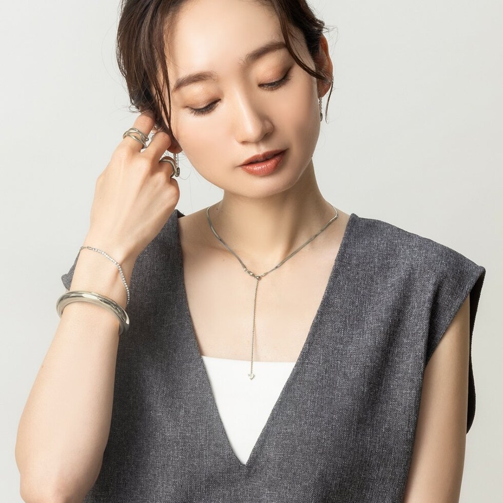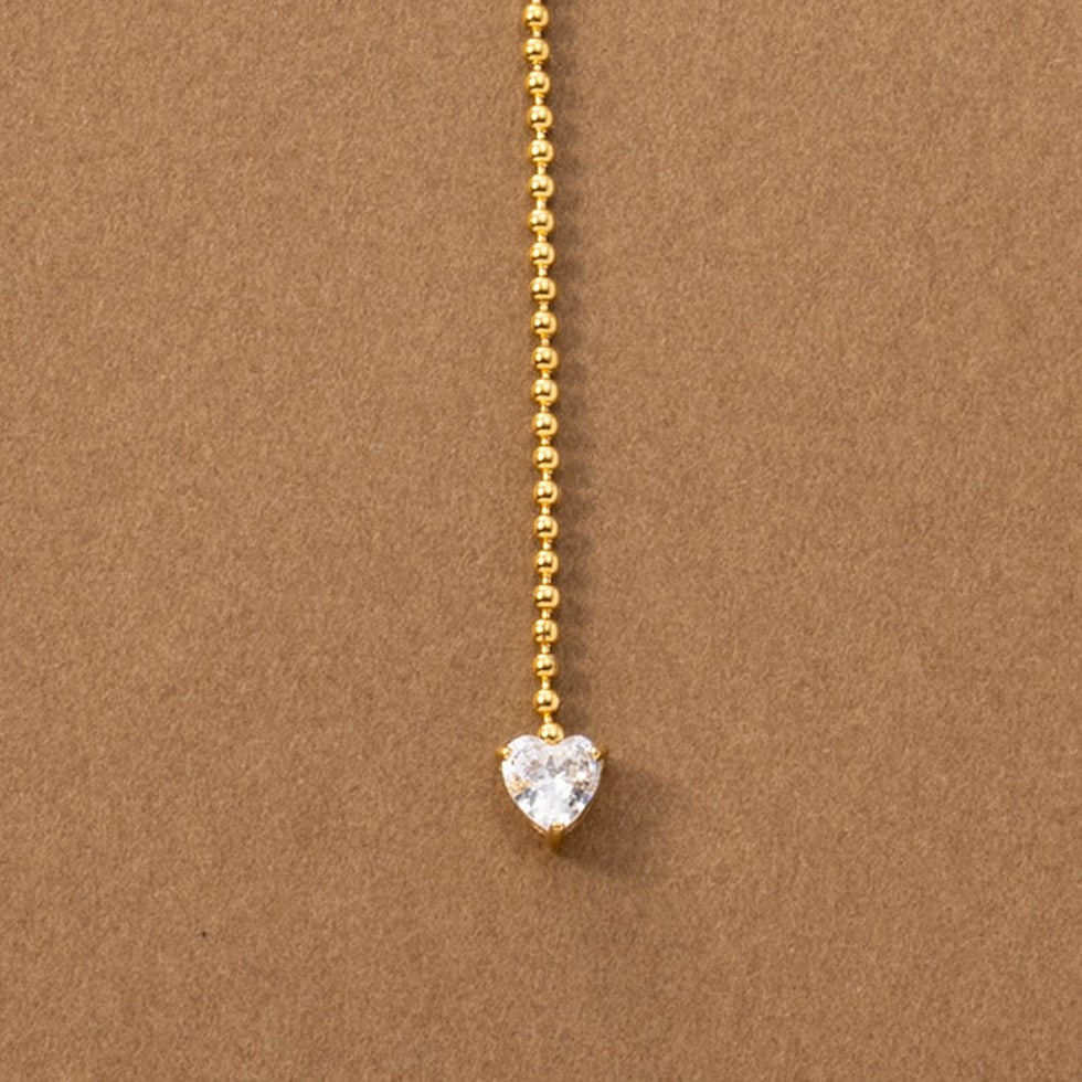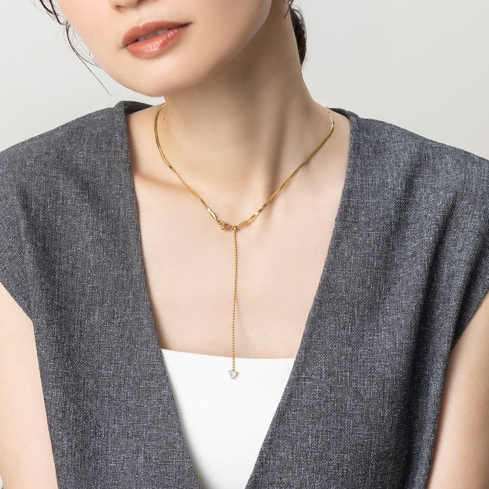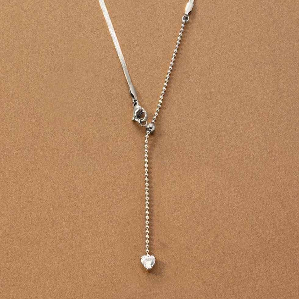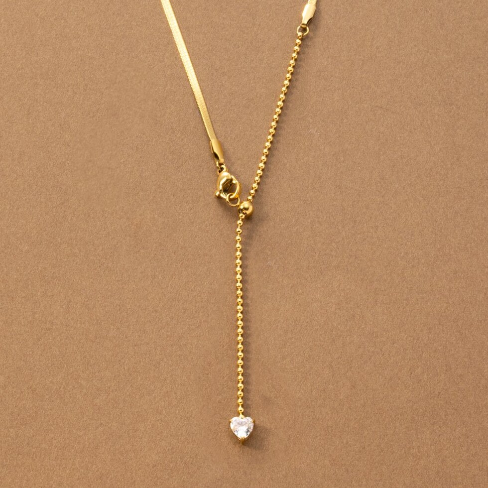ハート型のビジューとスネーク×ボールチェーンを合わせたY字ネックレス。さりげなくも凝ったデザインがコーデのアクセント使いにぴったりなアイテム◎スライド式アジャスターでお好みのバランスに調節ができ、ビジューを後ろにすればシンプルなスネークチェーンとしても使えるオススメのひと品です。