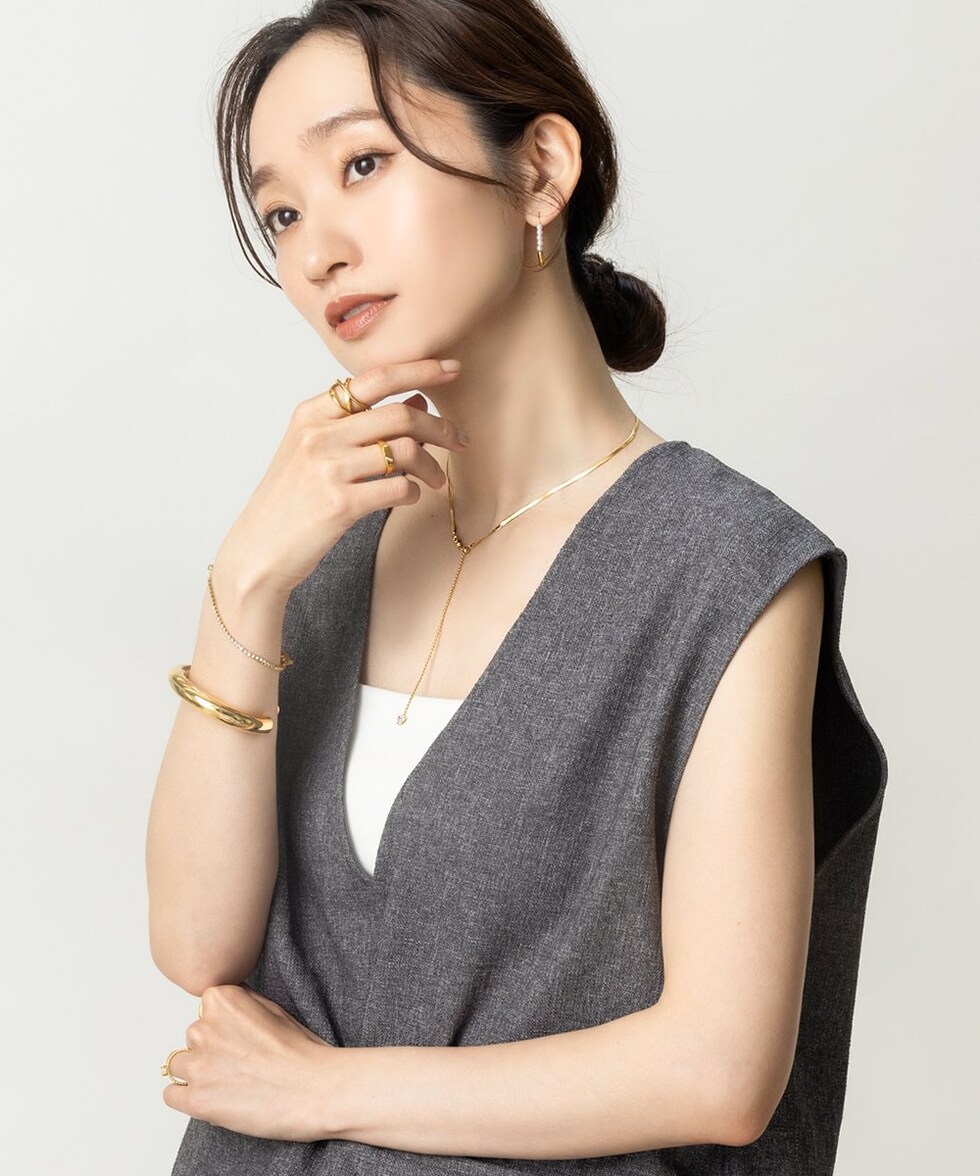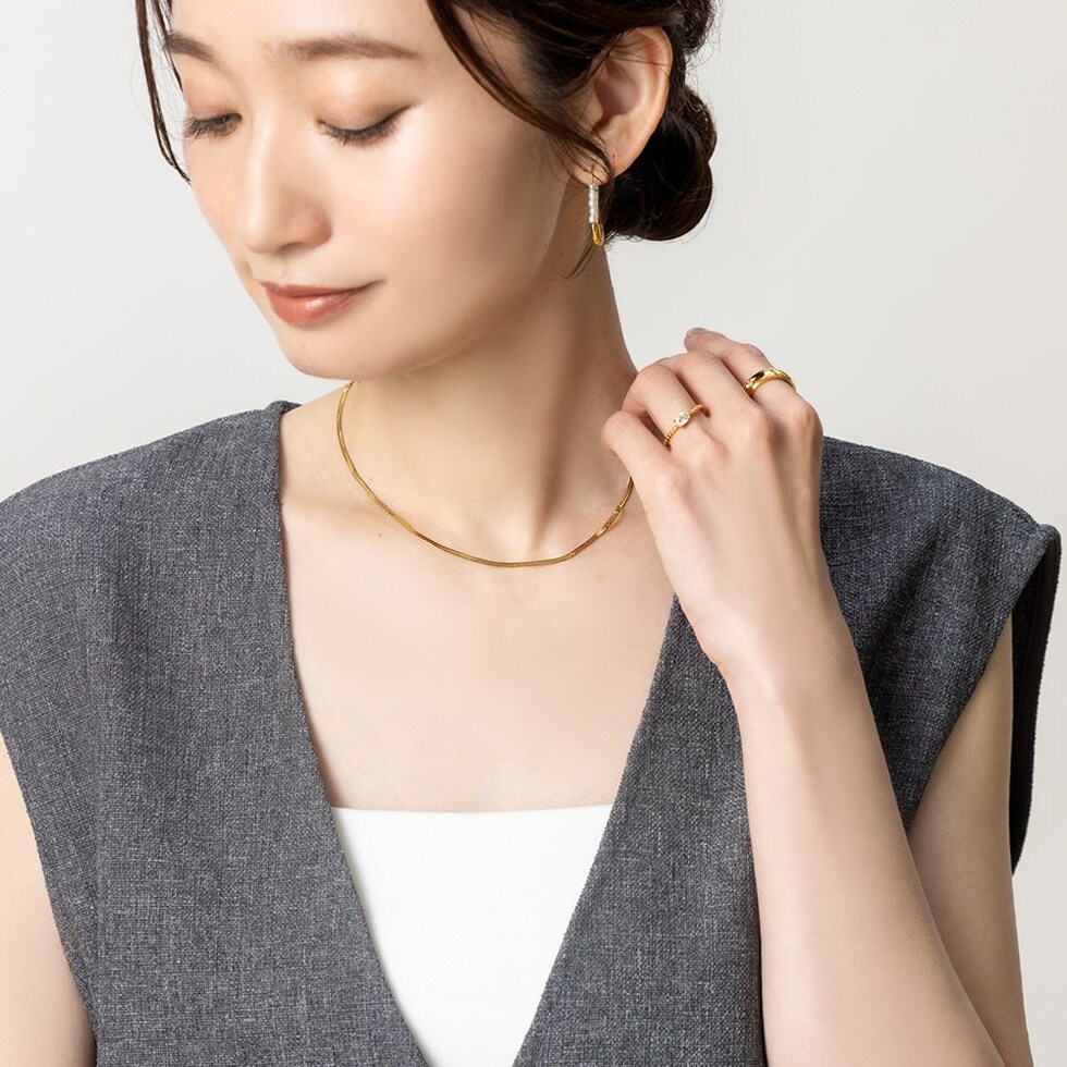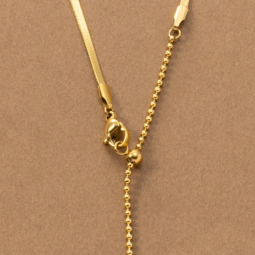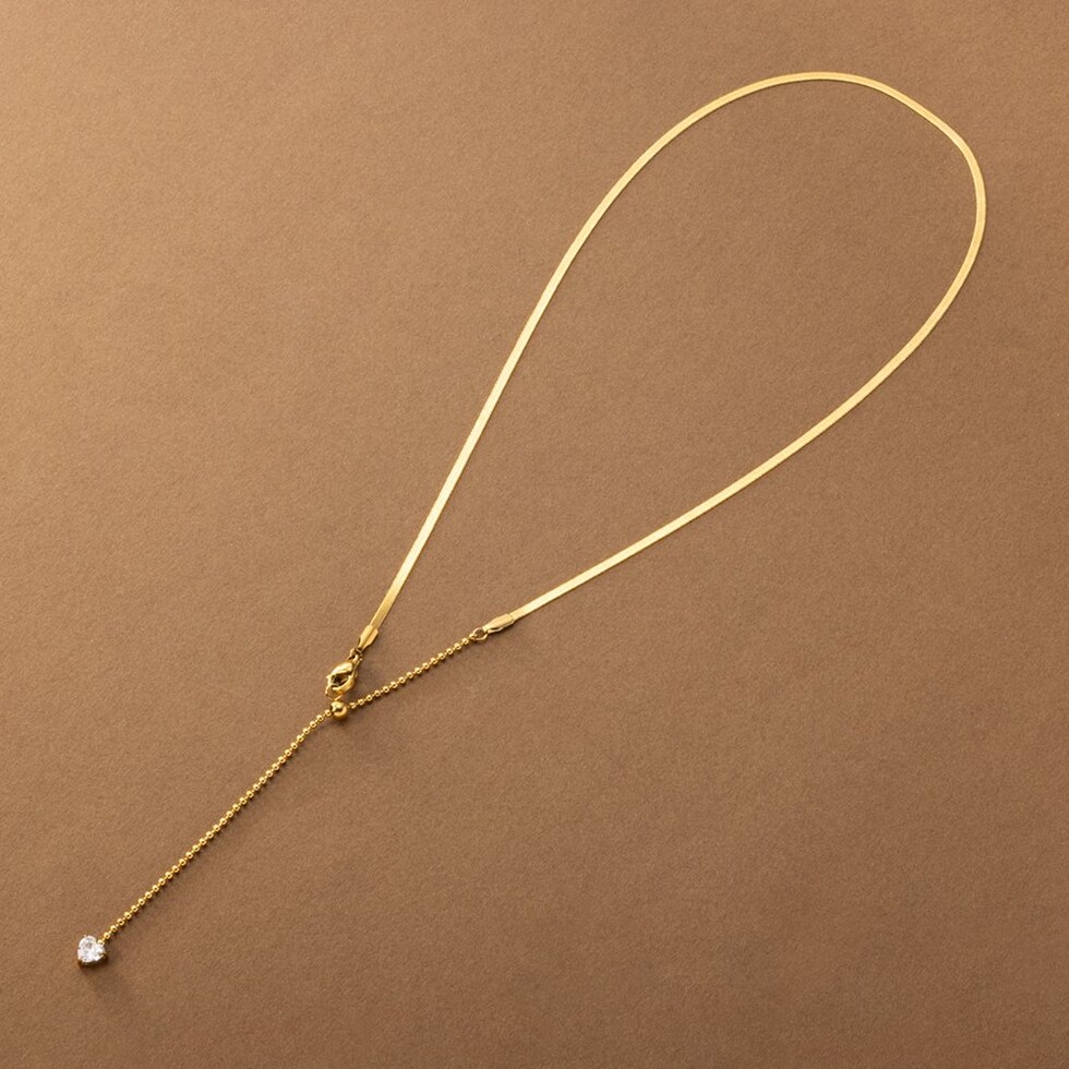 ハート型のビジューとスネーク×ボールチェーンを合わせたY字ネックレス。さりげなくも凝ったデザインがコーデのアクセント使いにぴったりなアイテム◎スライド式アジャスターでお好みのバランスに調節ができ、ビジューを後ろにすればシンプルなスネークチェーンとしても使えるオススメのひと品です。