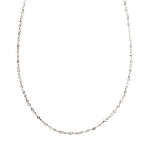 角度が変わるたびにキラキラと繊細に煌くチェーンネックレス。コーデに合わせて使い回せる40cm/45cm展開です。一本でも存在感があり、重ねづけにも活躍しそう◎