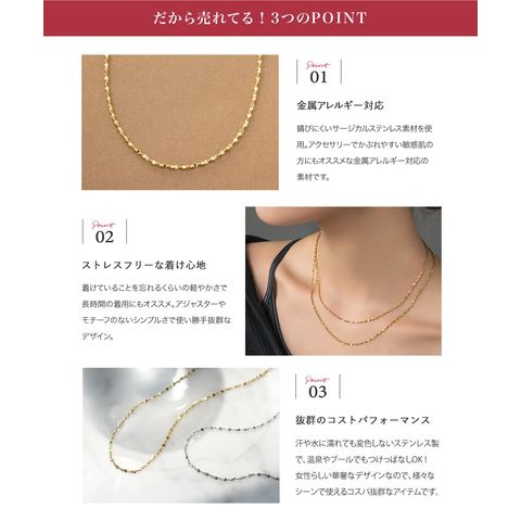 ネックレス ステンレス 金属アレルギー サージカルステンレス レディース つけっぱなし ショート チェーン 2mm幅 メタル アジャスターレス 2サイズ cream dot ゆうパケット [ピンクゴールド_45cm]