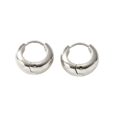 丸みのあるぷっくりシルエットで使い勝手の抜群なフープピアス。シンプルで使い勝手の良いデザインはどの角度から見てもスッキリとキレイ見えするデザインです。