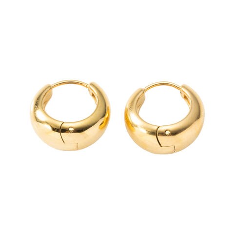 丸みのあるぷっくりシルエットで使い勝手の抜群なフープピアス。シンプルで使い勝手の良いデザインはどの角度から見てもスッキリとキレイ見えするデザインです。