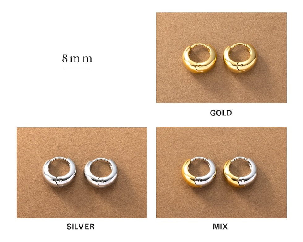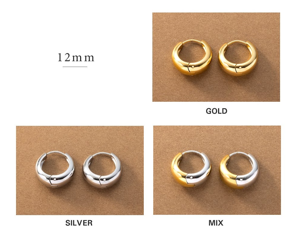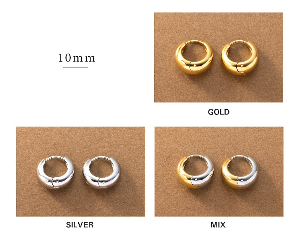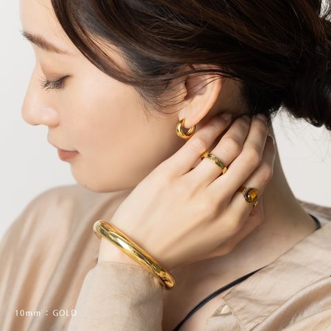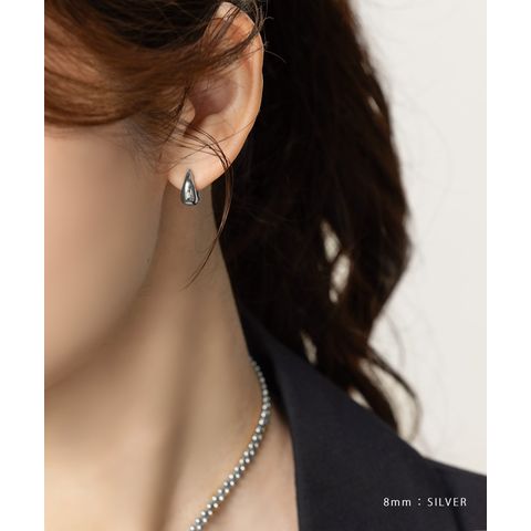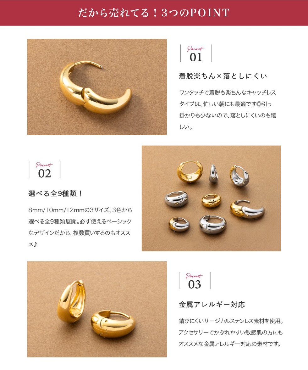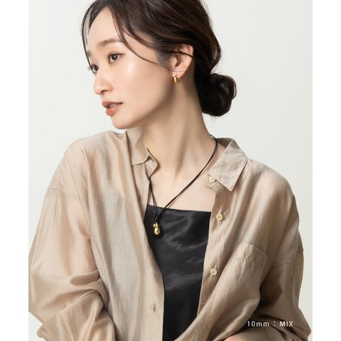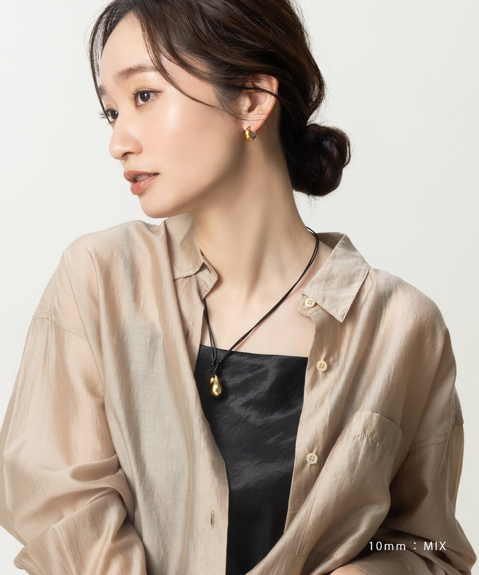 丸みのあるぷっくりシルエットで使い勝手の抜群なフープピアス。シンプルで使い勝手の良いデザインはどの角度から見てもスッキリとキレイ見えするデザインです。