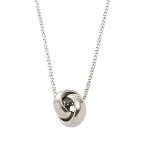 艶やかなリングを2つ連ねたバイカラーのネックレス。シンプルながらも立体感のある個性的なデザインが、女性のデコルテを美しく引き立ててくれます。肌馴染みもよく錆びにくいステンレス製だからデイリー使いにおすすめ◎