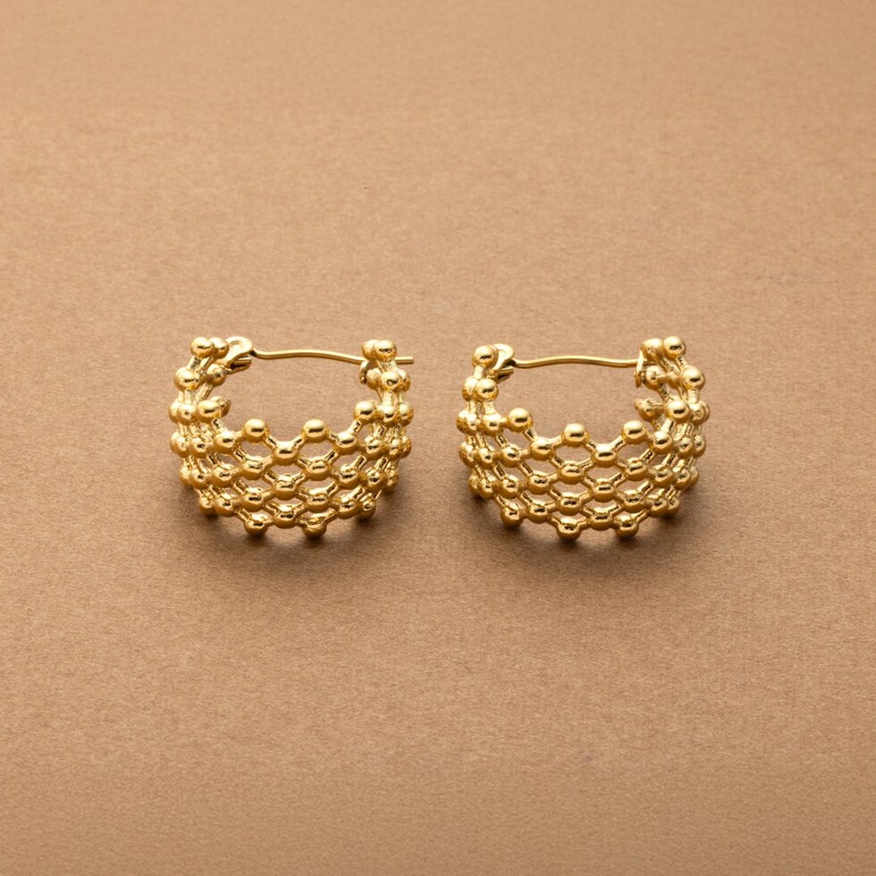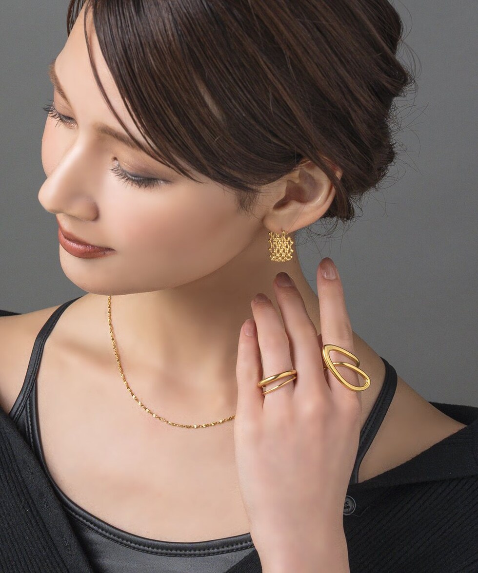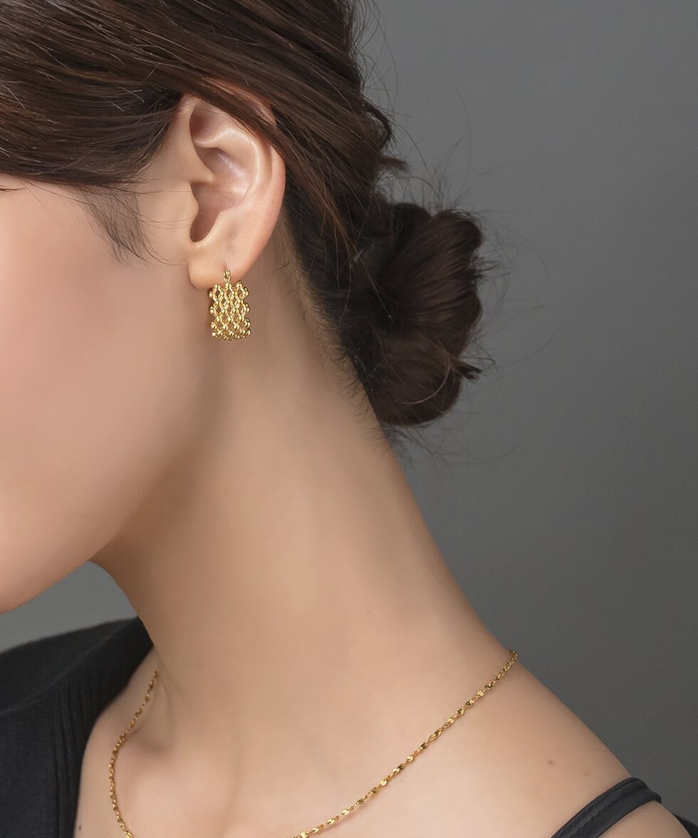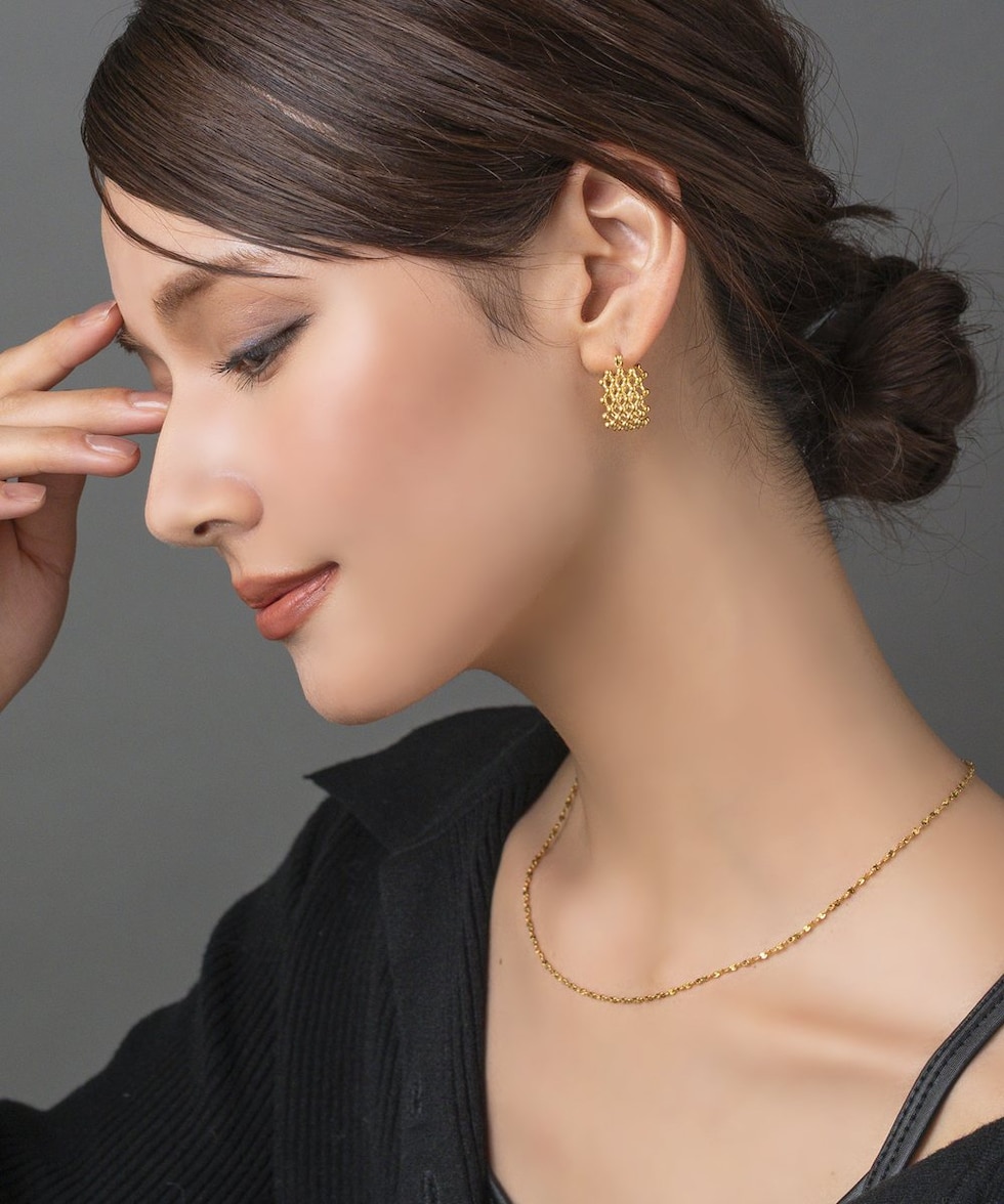 大ぶりでも軽やかな着け心地。丸みのあるフォルムと繊細な編み目模様が、耳元に柔らかな影と華やぎを添えてくれる存在感抜群なアイテム。
