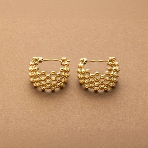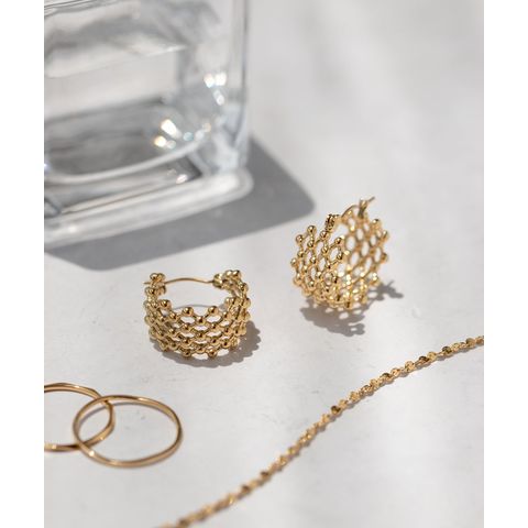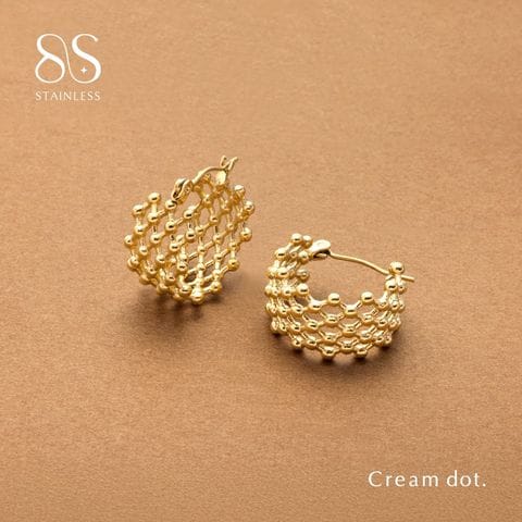 ピアス ステンレス 金属アレルギー サージカルステンレス レディース フープ つけっぱなし キャッチレス 開閉式 ワンタッチ メッシュ ドット 立体感 透け感 cream dot ゆうパケット [ゴールド_ピアス]