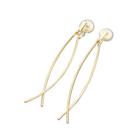 イヤリング レディース ワイヤーフィット 挟むだけ ピアス見え シリコンカバー カーブ クロス メタルバー 揺れる cream dot ゆうパケット [ゴールド_イヤリング]