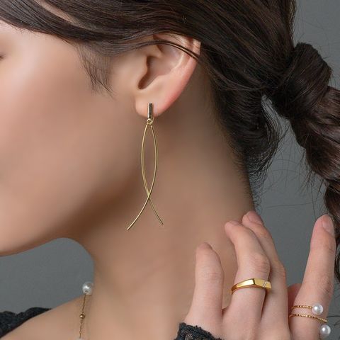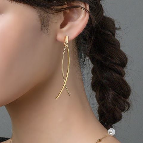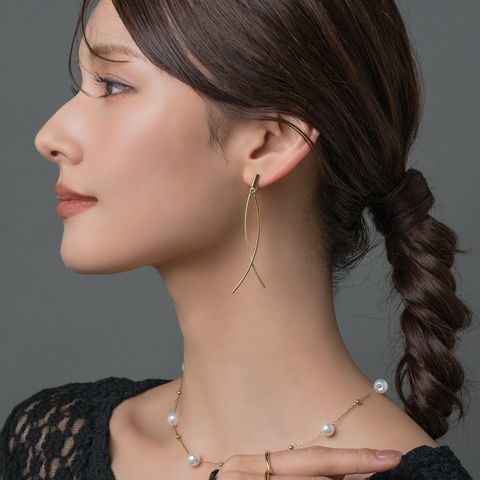 カーブクロスデザインのワイヤーフィットイヤリング。耳元で揺らめくクロスデザインが華やかな印象で、スタイリングのアクセントに◎シリコンキャッチ付き&調整可能なイヤリング金具で、ピアスのようにすっきり見えるのがポイント。長時間の着用も痛くなりにくく快適です。