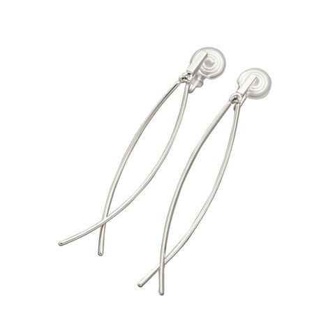 イヤリング レディース ワイヤーフィット 挟むだけ ピアス見え シリコンカバー カーブ クロス メタルバー 揺れる cream dot ゆうパケット [シルバー_イヤリング]