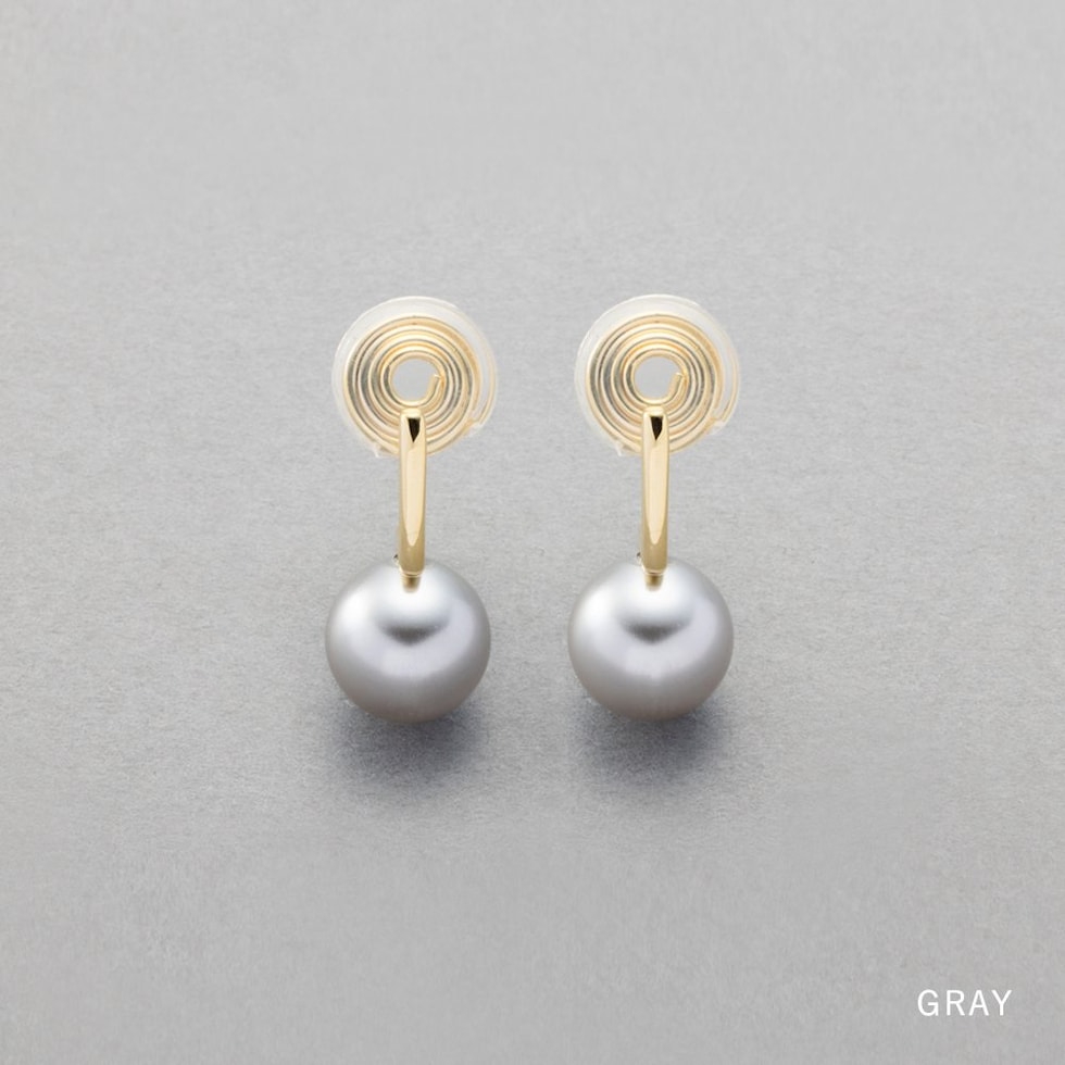 イヤリング レディース ワイヤーフィット 挟むだけ ピアス見え シリコンカバー 一粒 パール メタルバー グレー cream dot ゆうパケット [グレー_イヤリング]