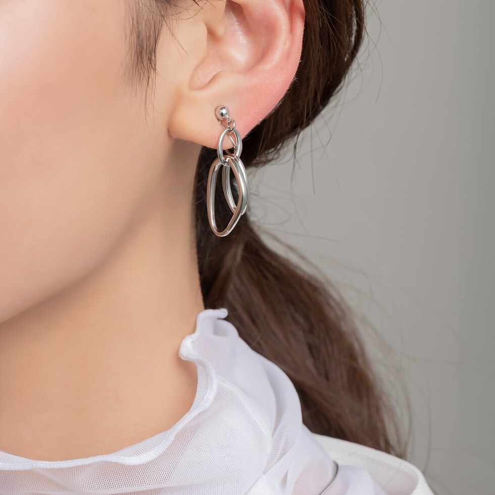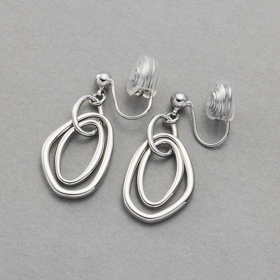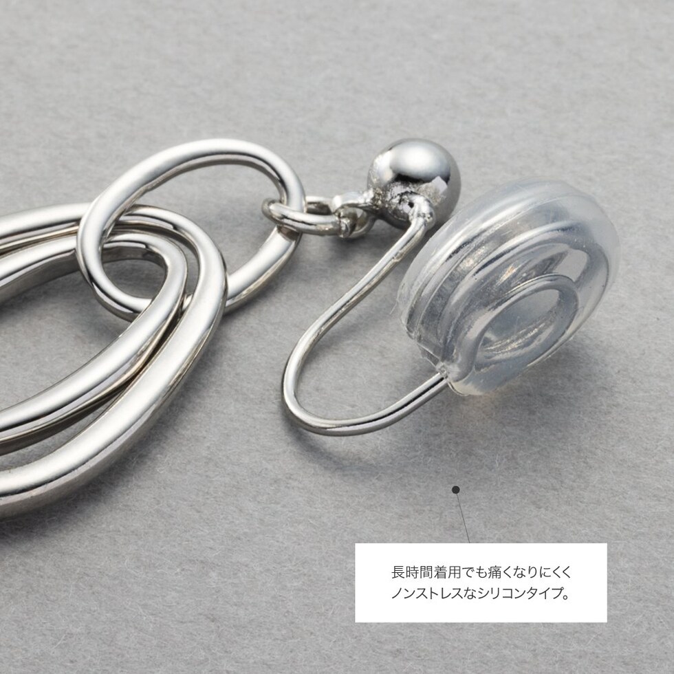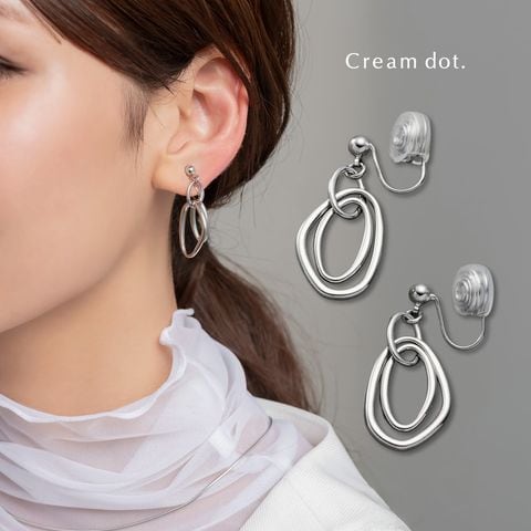 イヤリング レディース ワイヤーフィット 挟むだけ ピアス見え シリコンカバー フープ オーバル メタル ループ 揺れる 変形 歪み cream dot ゆうパケット [シルバー_イヤリング]