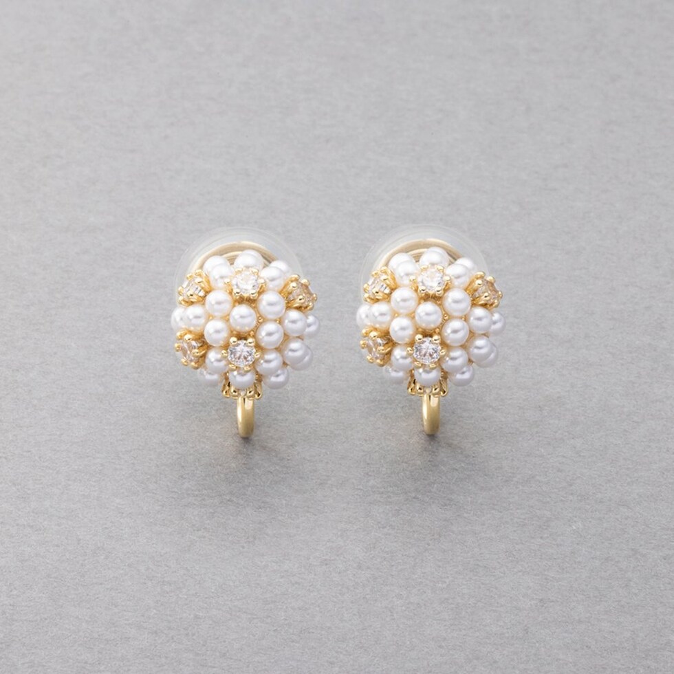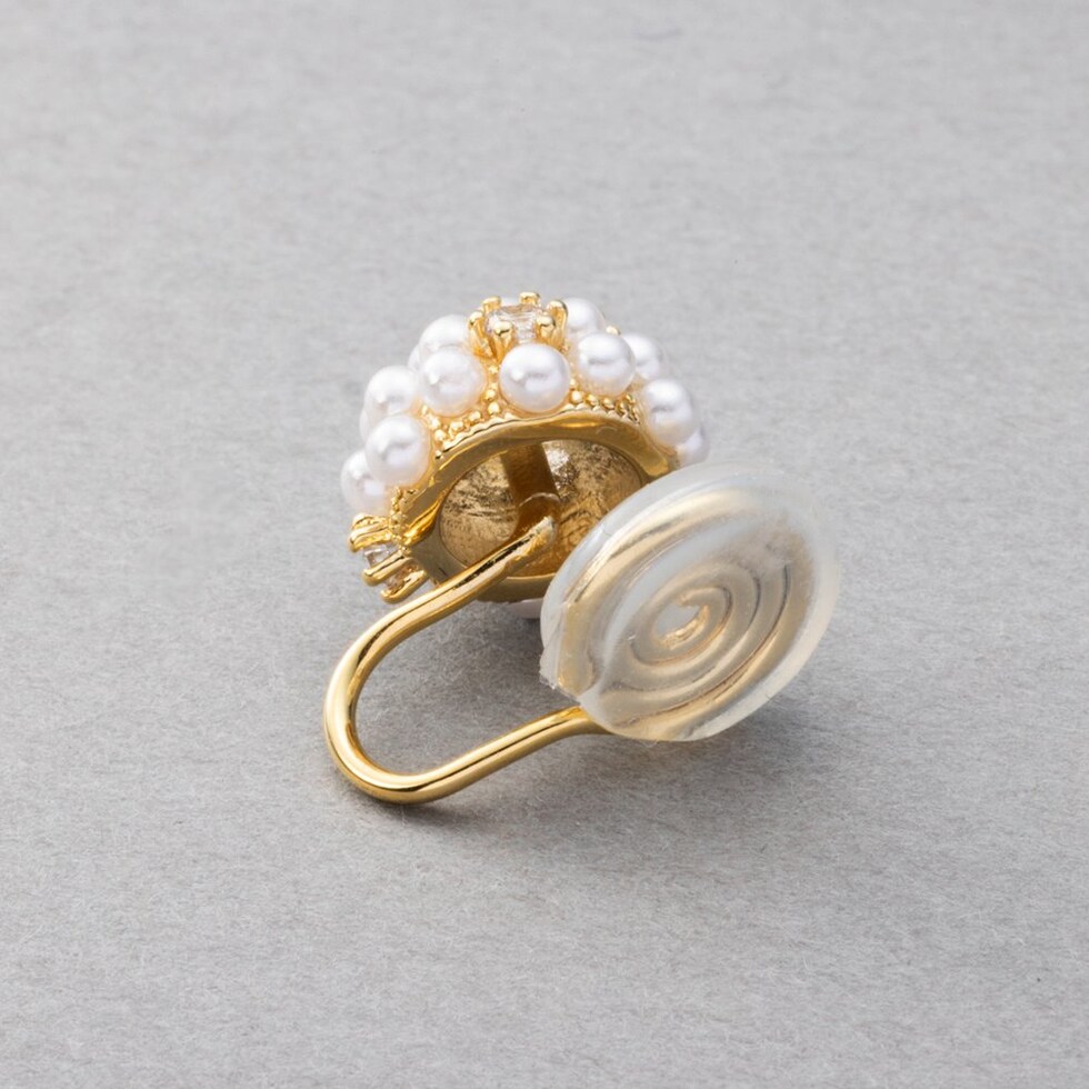 イヤリング レディース ワイヤーフィット 挟むだけ ピアス見え シリコンカバー パール ビジュー パヴェ 軽量 セレモニー cream dot ゆうパケット [ゴールド_イヤリング]
