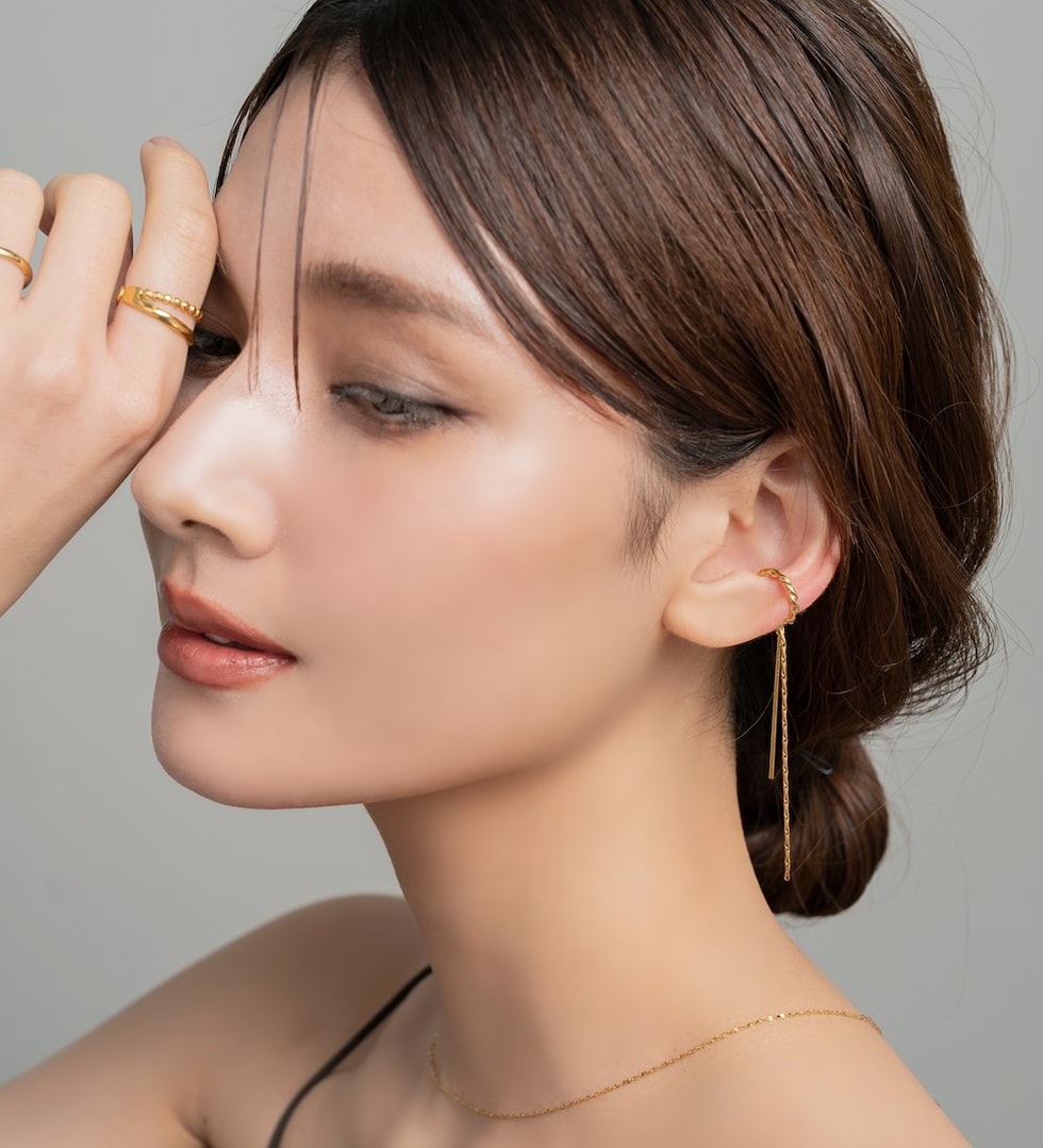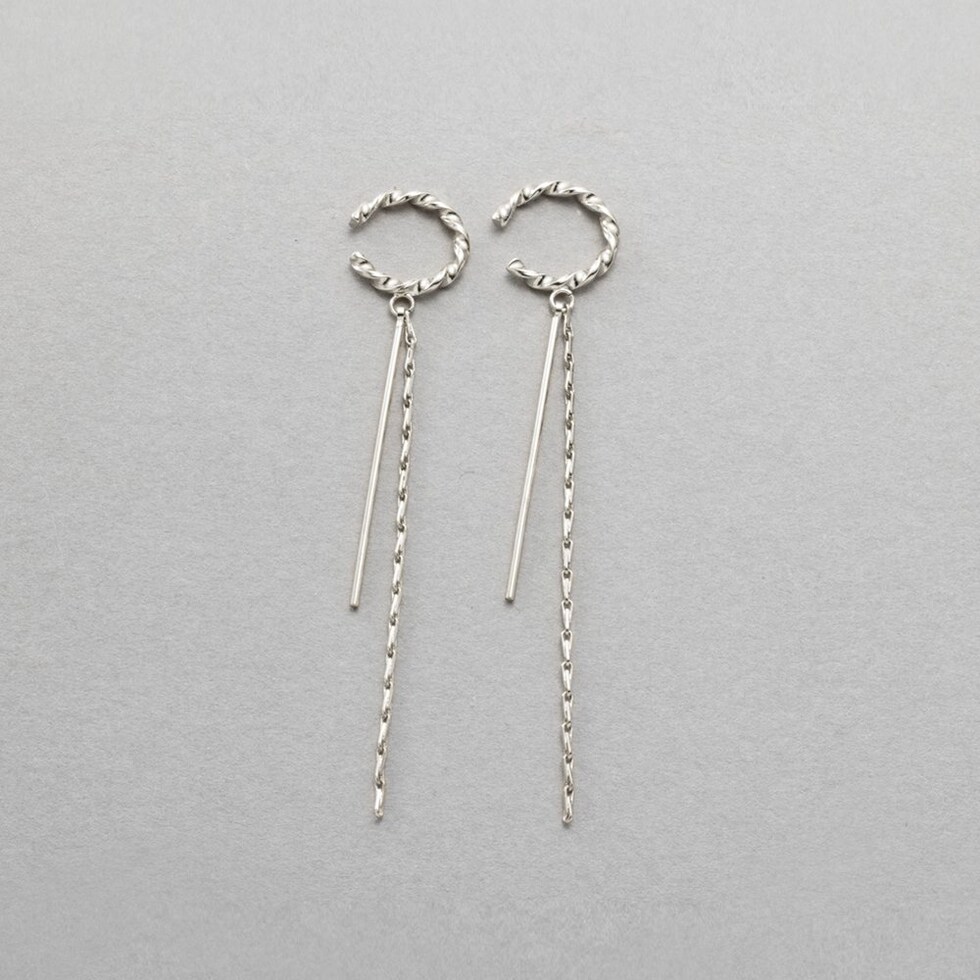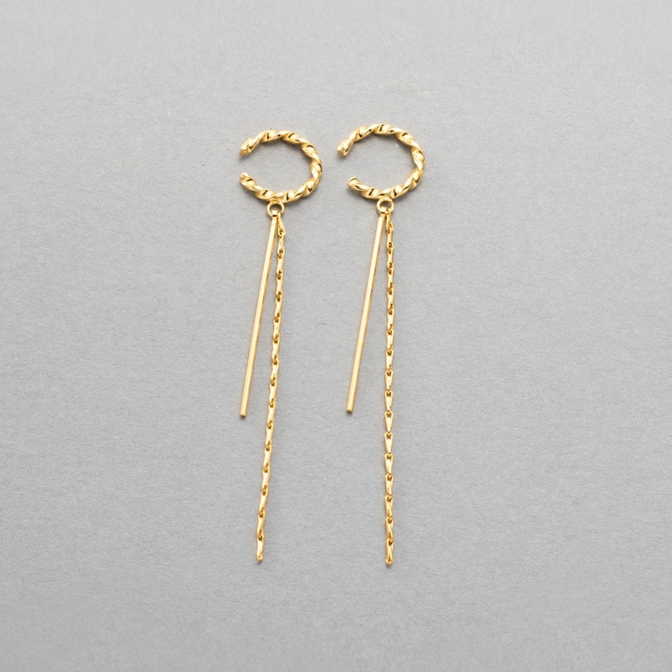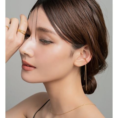 ツイストメタルフープにメタルバーと華奢チェーンを組み合わせた両耳用イヤーカフ。ツイストメタルが品よく煌めき、個性的なデザインが周りと差のつくアイテム◎軽やかな揺れ感がスタイリングをクラスアップさせてくれます。