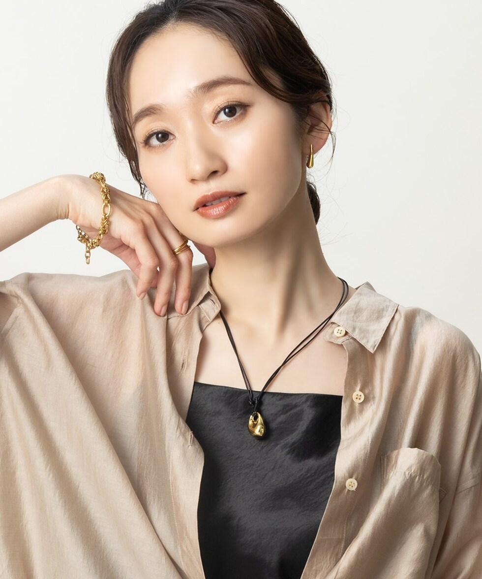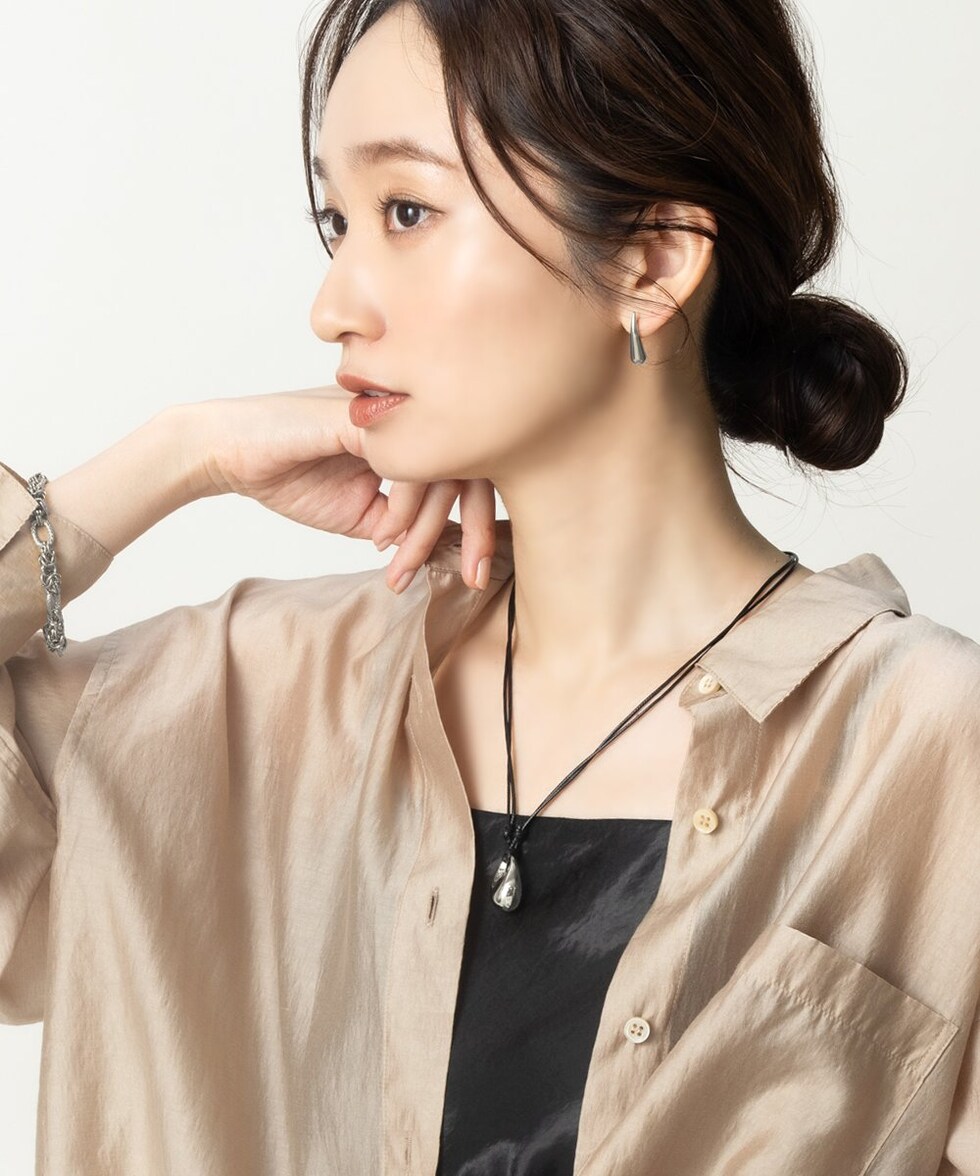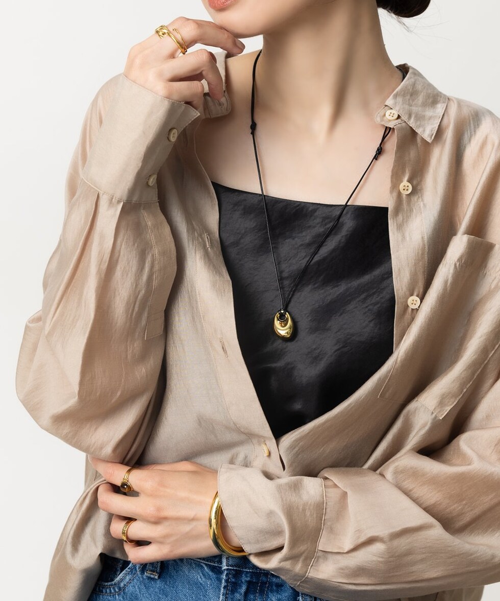 艶感のあるぷっくりメタルモチーフのレザーコードネックレス。本革のような高見えするPUレザーコードを使用しています。コードの長さも自由に調節可能で,コーディネートに抜け感が欲しい時に役立つこと間違いナシ◎