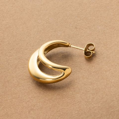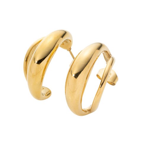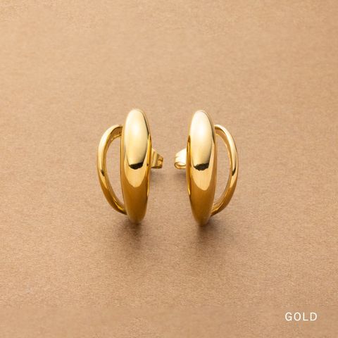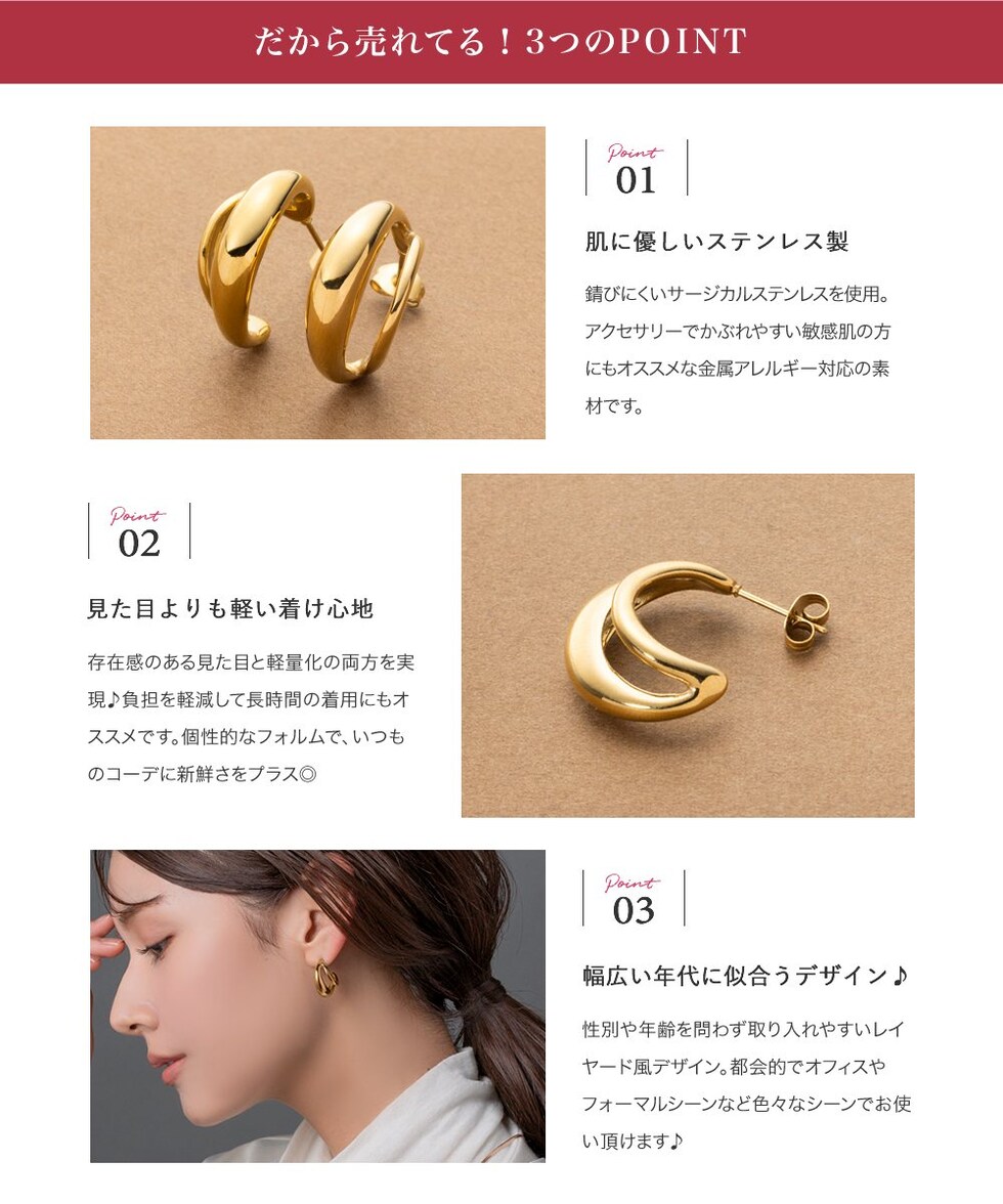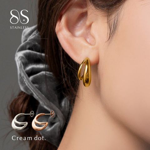 ピアス ステンレス 金属アレルギー サージカルステンレス レディース つけっぱなし ダブルメタル ぷっくり 艶感 カーブ 軽量 フープ スタッド cream dot ゆうパケット [ゴールド_ピアス]