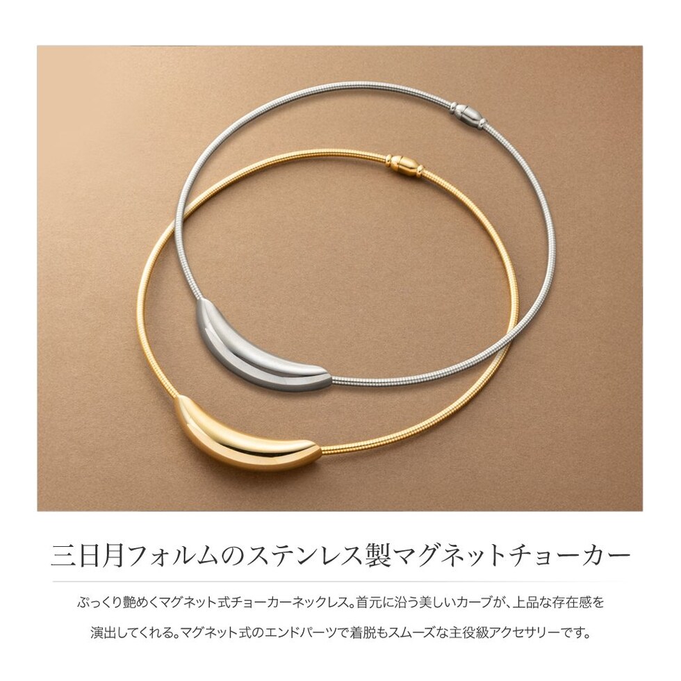 ネックレス ステンレス 金属アレルギー サージカルステンレス レディース チョーカー マグネットクラスプ 1秒着脱 ワンタッチ 簡単装着 つけっぱなし 三日月 cream dot ゆうパケット [シルバー_ワンサイズ]