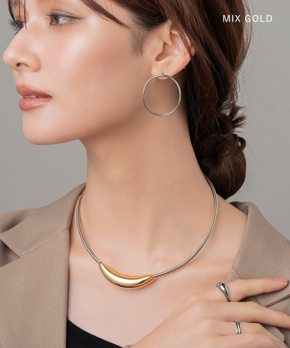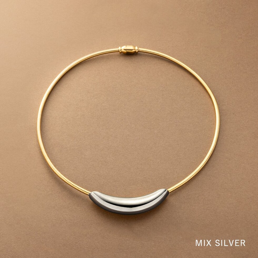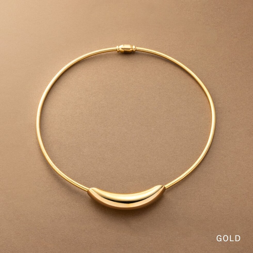 ぷっくり艶めくマグネット式チョーカーネックレス。首元に沿う美しいカーブが、上品な存在感を演出してくれる。マグネット式のエンドパーツで着脱もスムーズな主役級アクセサリーです。
