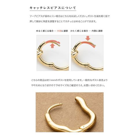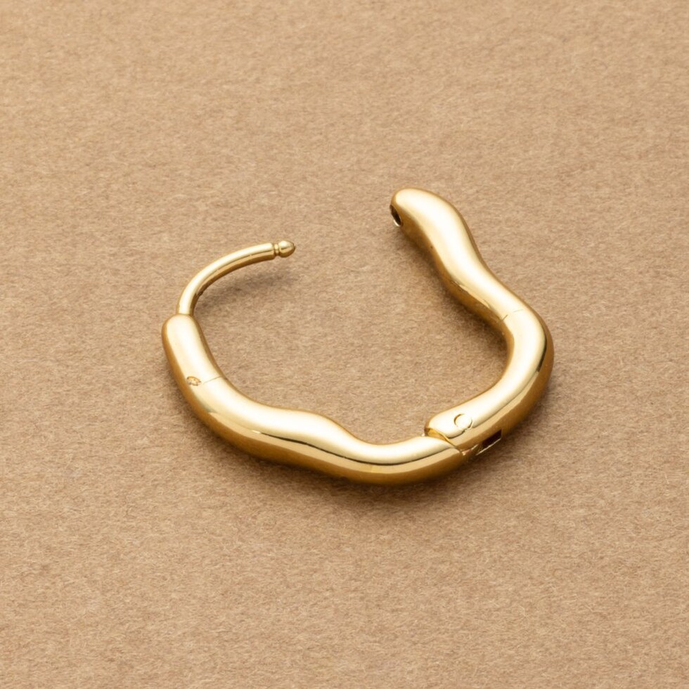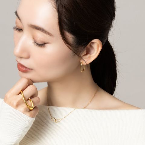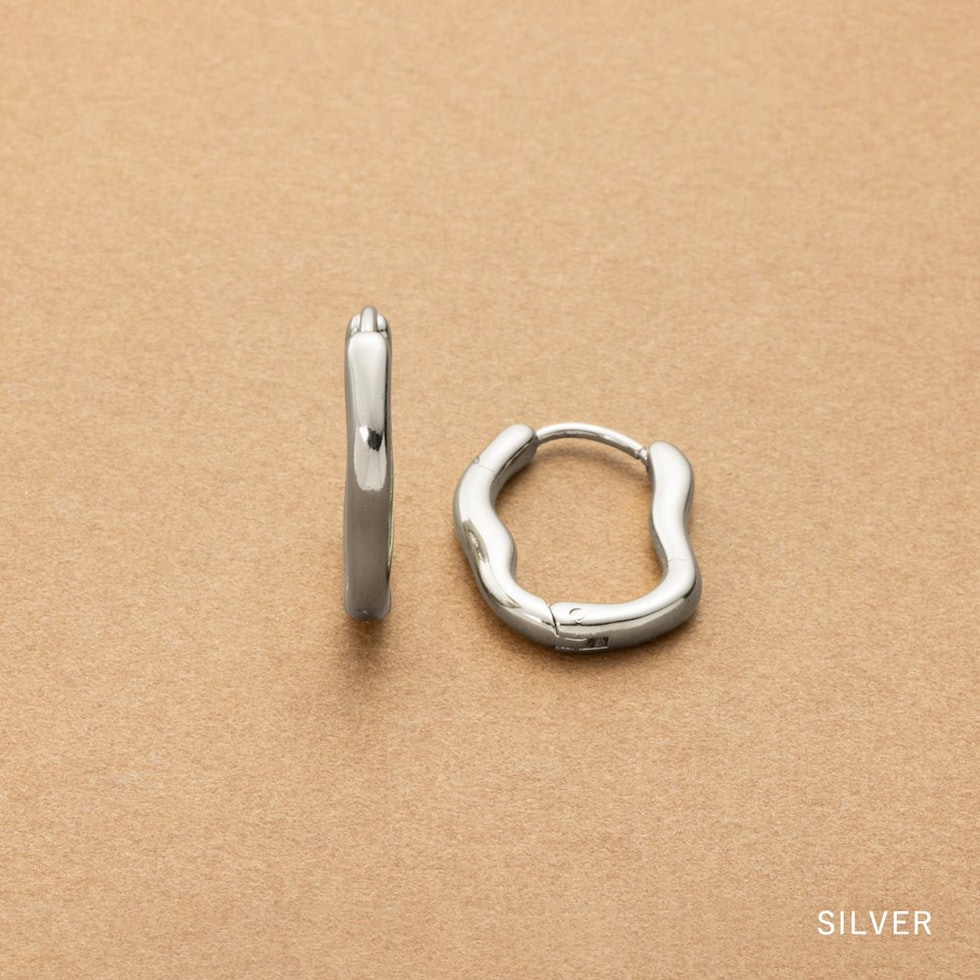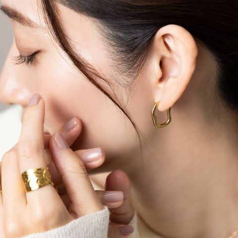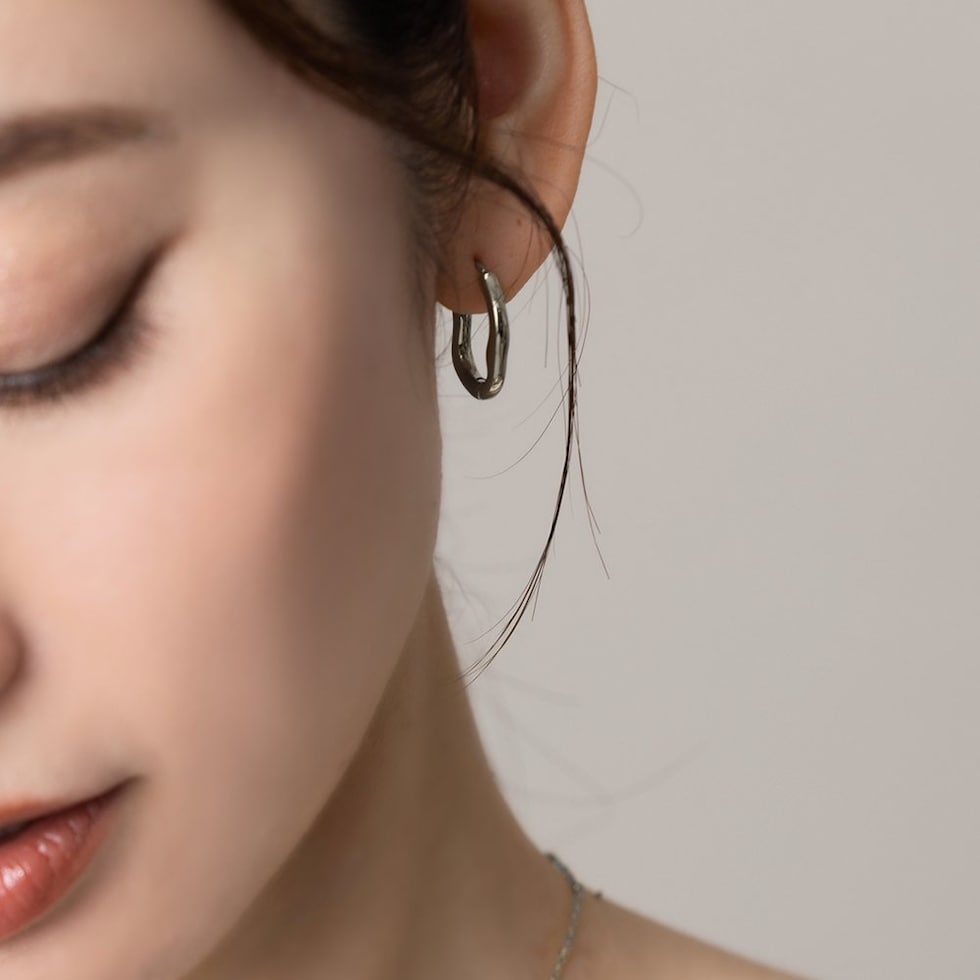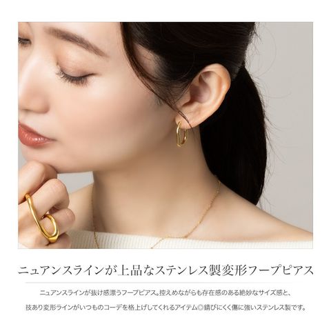ニュアンスラインが抜け感漂うフープピアス。控えめながらも存在感のある絶妙なサイズ感と、技あり変形ラインがいつものコーデを格上げしてくれるアイテム◎錆びにくく傷に強いステンレス製です。