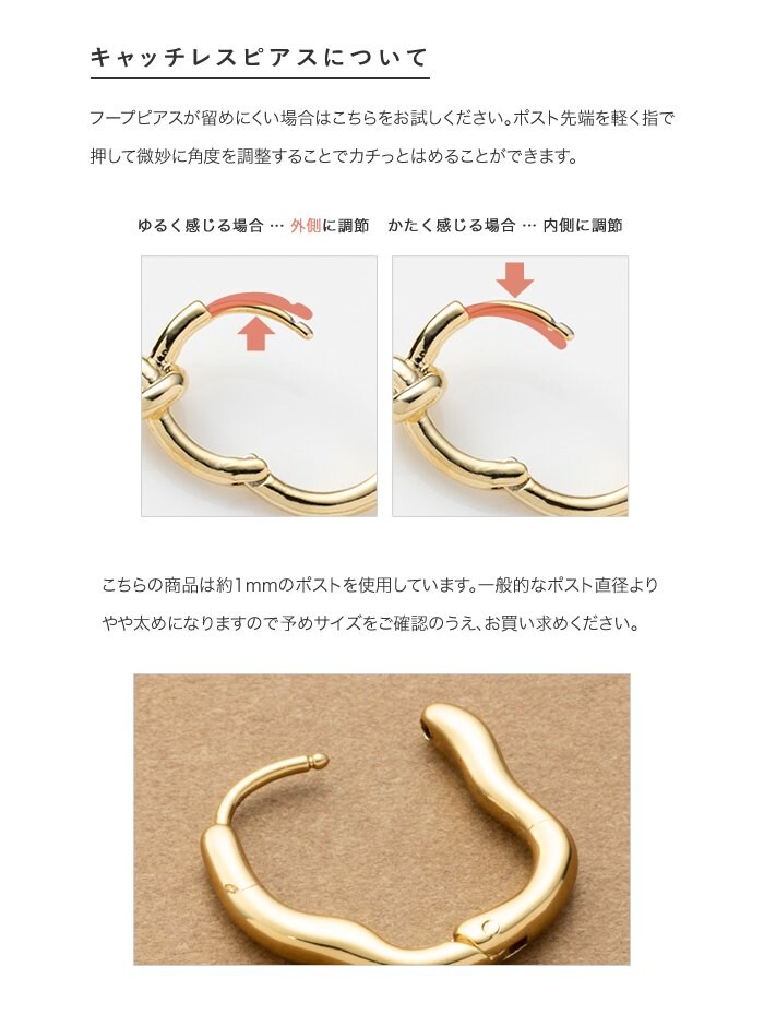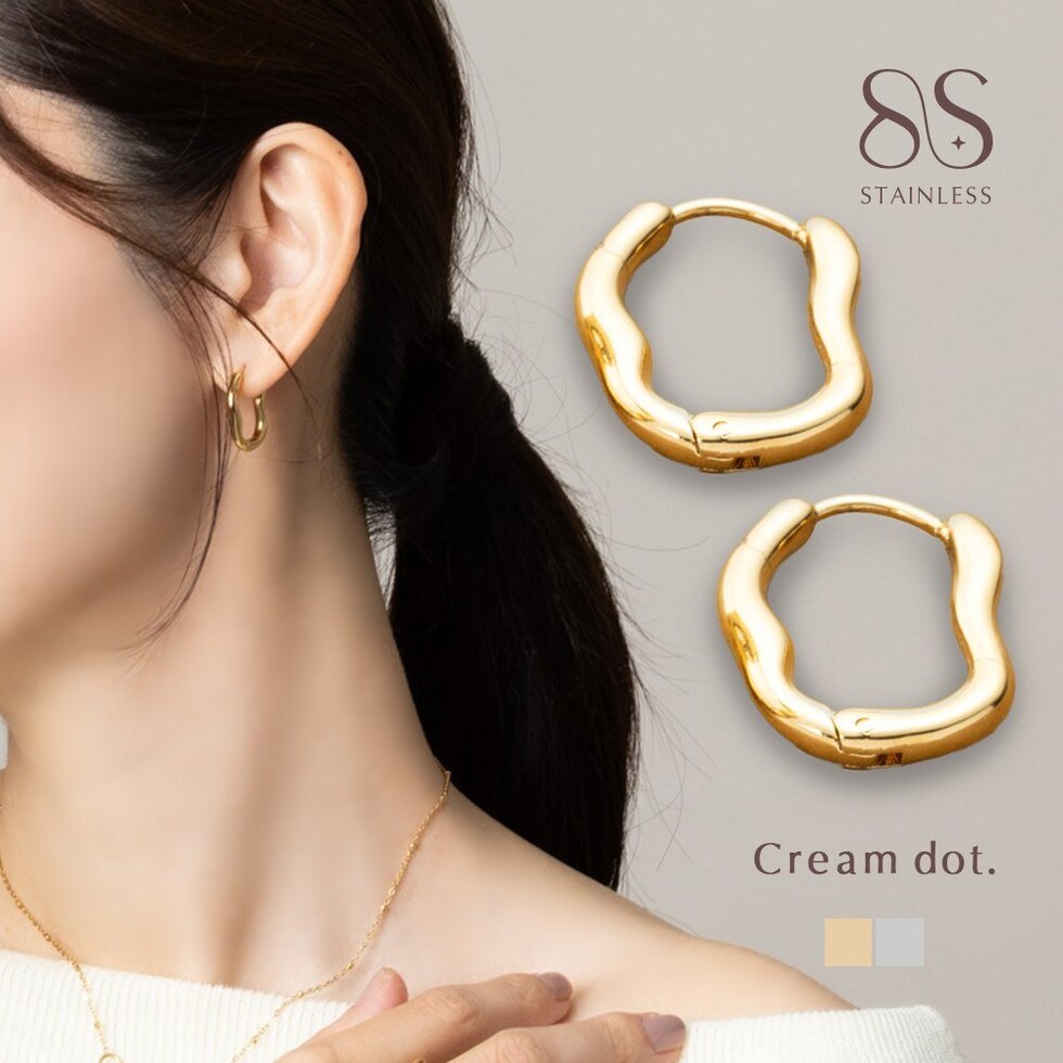 ピアス ステンレス 金属アレルギー サージカルステンレス レディース つけっぱなし キャッチレス 中折れ 開閉式 ワンタッチ フープ 変形 cream dot ゆうパケット [シルバー_ピアス]