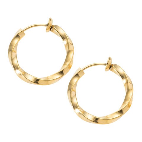 ひねりを効かせたメタルラインのフープイヤリング。ツイストした立体的なフープラインが動くたびに艶めき目を惹く仕上がりに◎選べる10mm~14mmのサイズ展開で、さりげない大人の抜け感を演出します。