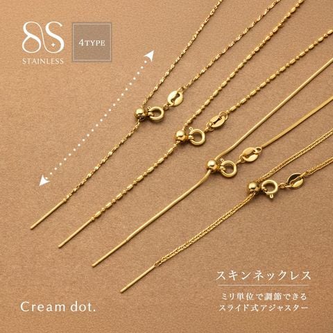 ネックレス ステンレス 金属アレルギー サージカルステンレス レディース ステンレス スライド式 フリーアジャスター 無段階調整 つけっぱなし 極細 スキンジュエリー チェーン 4タイプ cream dot ゆうパケット [D:ゴールド_フリーサイズ]