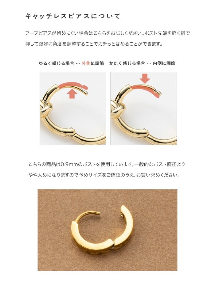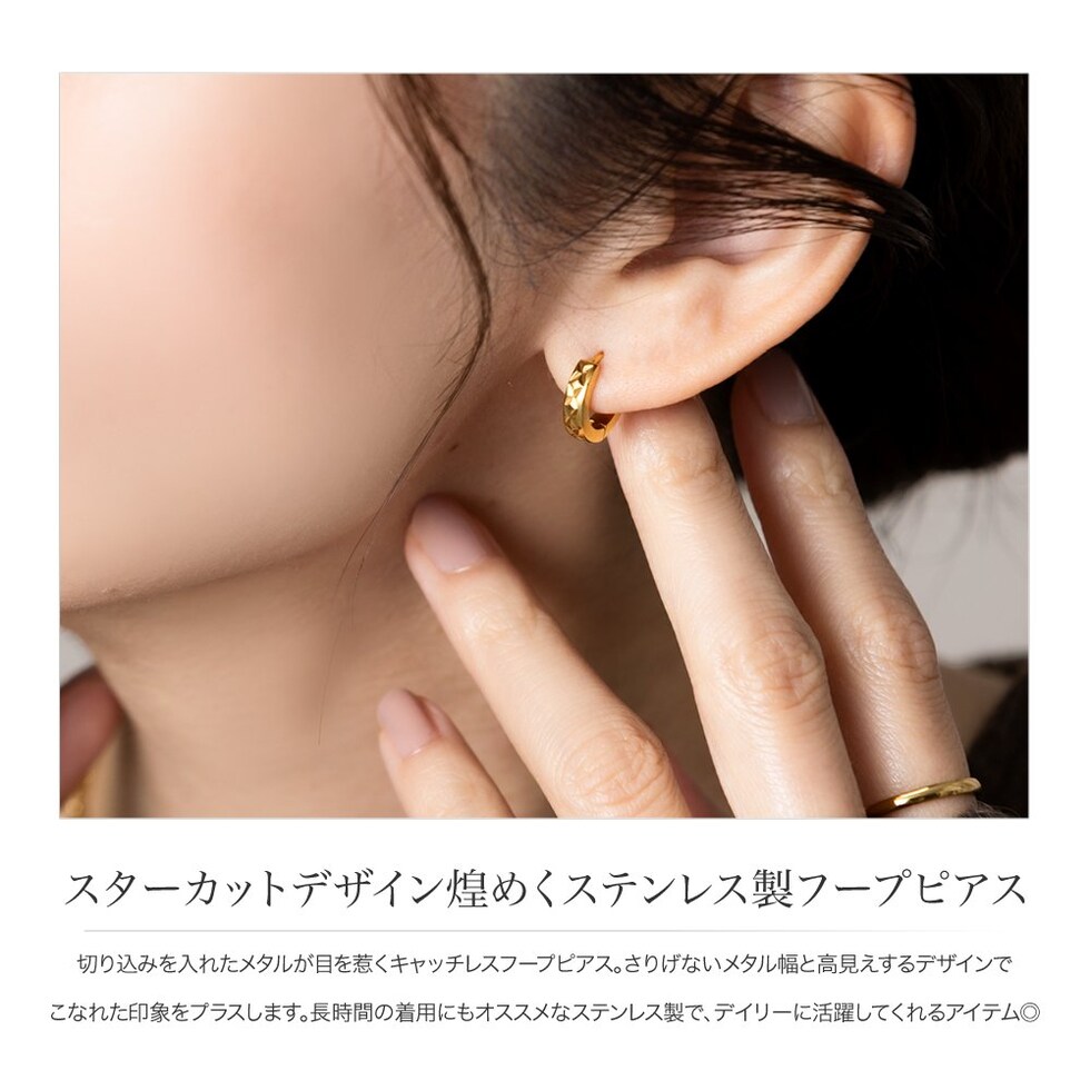 ピアス ステンレス 金属アレルギー サージカルステンレス レディース つけっぱなし キャッチレス 中折れ 開閉式 ワンタッチ 切り込み スターカット フープ cream dot ゆうパケット [ゴールド_ピアス]