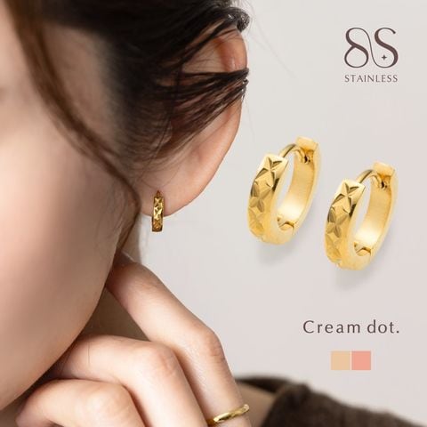 ピアス ステンレス 金属アレルギー サージカルステンレス レディース つけっぱなし キャッチレス 中折れ 開閉式 ワンタッチ 切り込み スターカット フープ cream dot ゆうパケット [ピンクゴールド_ピアス]