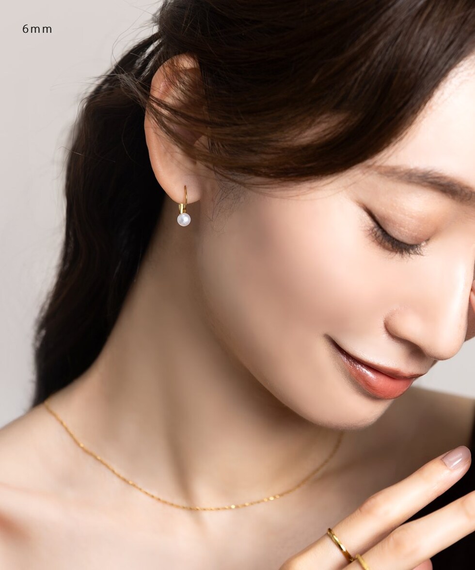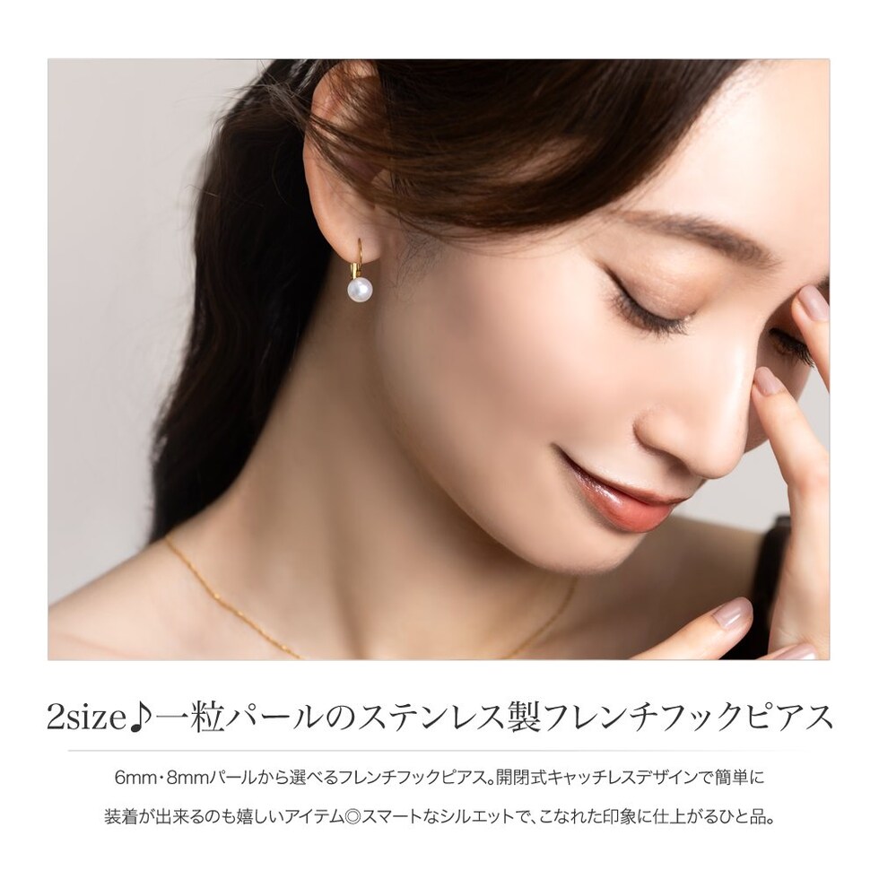 6mm・8mmパールから選べるフレンチフックピアス。開閉式キャッチレスデザインで簡単に装着が出来るのも嬉しいアイテム◎スマートなシルエットで、こなれた印象に仕上がるひと品。