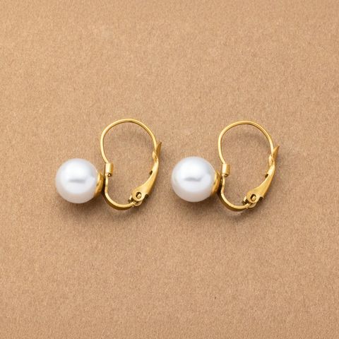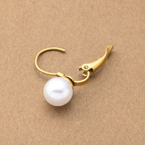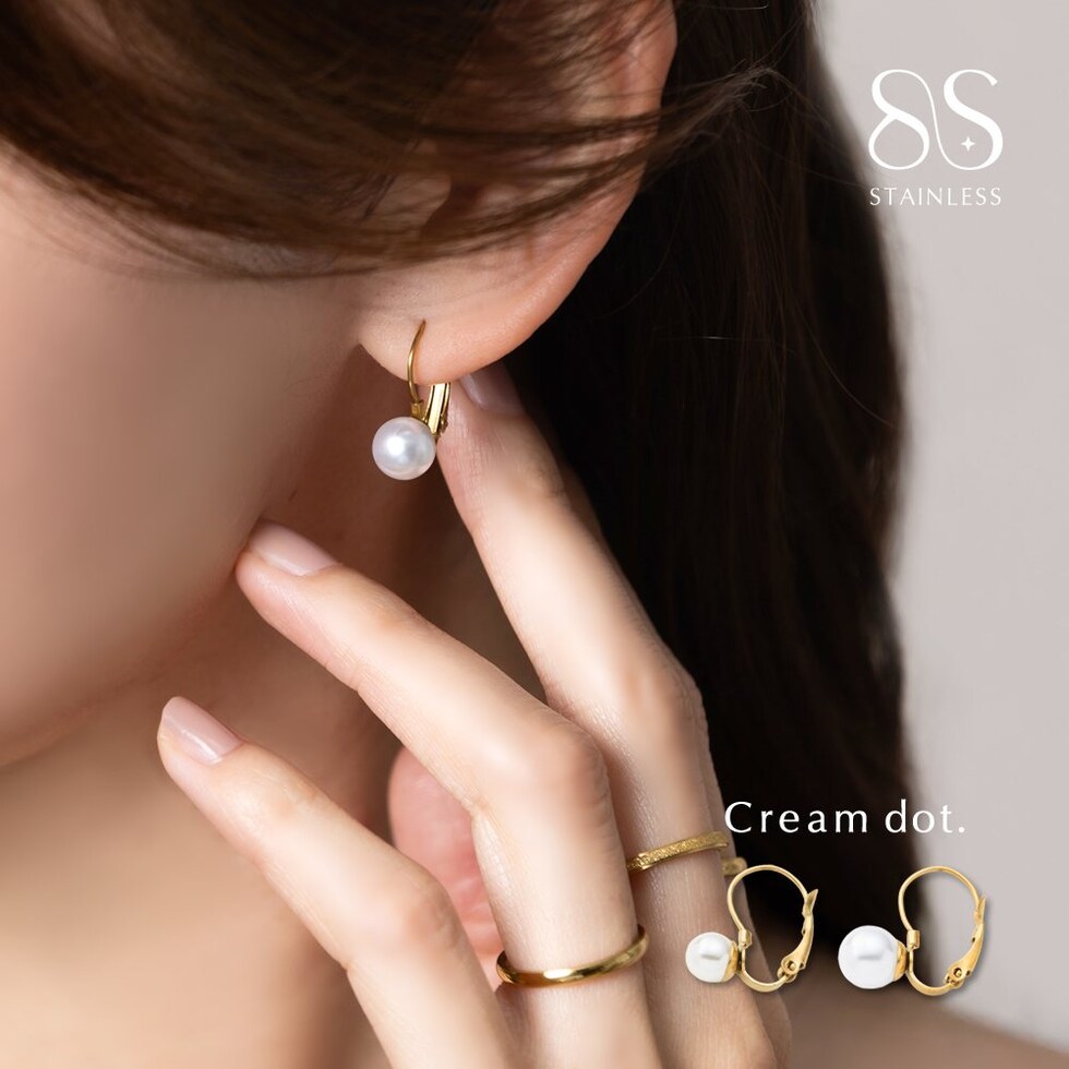 ピアス ステンレス 金属アレルギー サージカルステンレス レディース つけっぱなし キャッチレス フレンチフック 開閉式 ワンタッチ パール フープ 2サイズ cream dot ゆうパケット [パール_8mm]