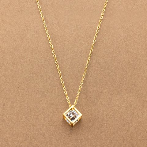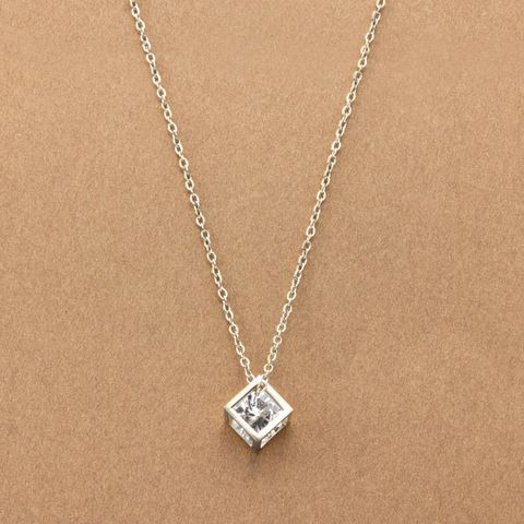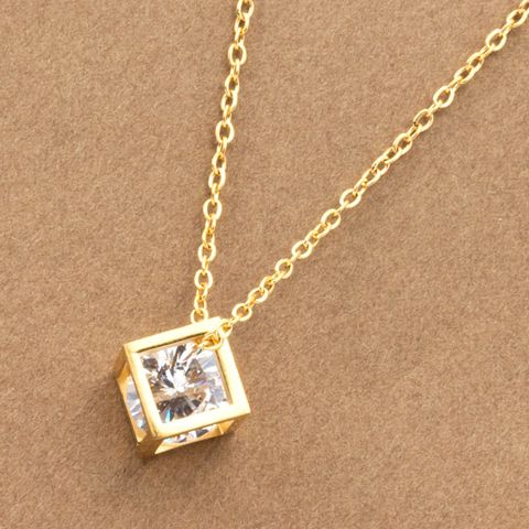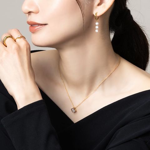 ビジューが胸元で煌めくキューブフレームのステンレス製ネックレス。立体キューブの中に閉じ込めたひと粒のビジューがコロコロと動いて女心くすぐる可愛らしいデザイン◎