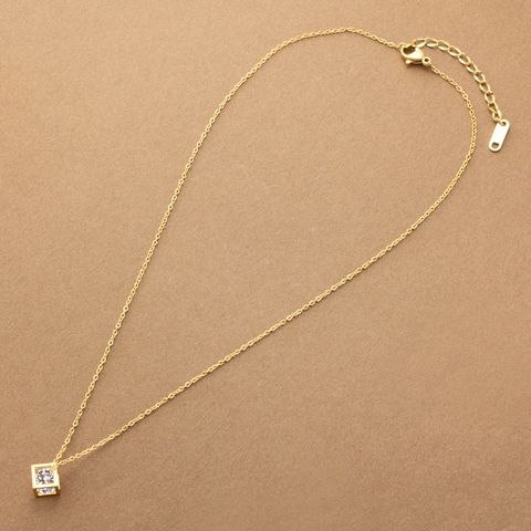 ネックレス ステンレス 金属アレルギー サージカルステンレス レディース つけっぱなし ショート チェーン キューブ フレーム 一粒ビジュー cream dot ゆうパケット [ピンクゴールド_ワンサイズ]
