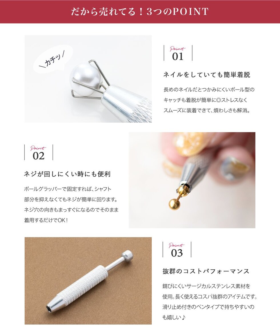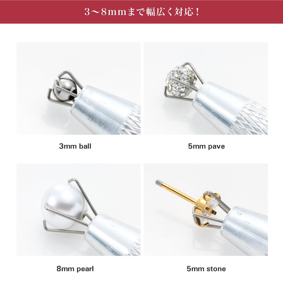 「ネジロック式のピアス、見た目が可愛いけどキャッチの着け外しが大変・・・」と感じたことはありませんか?小さなキャッチもしっかりつかんでロックしてくれるボールグラッパーがあれば解決します◎